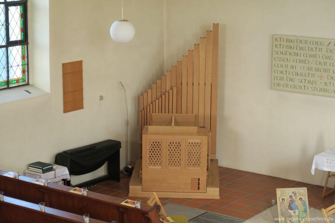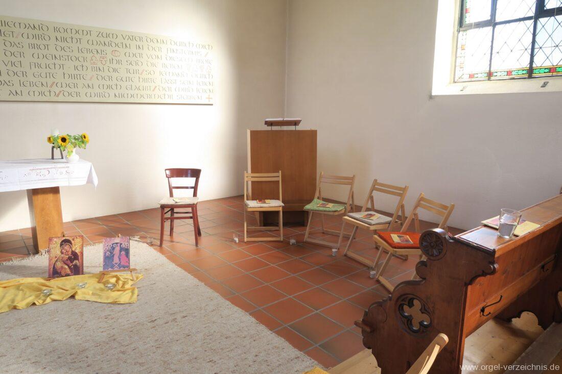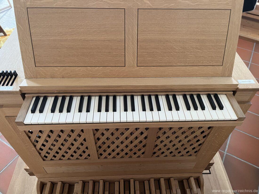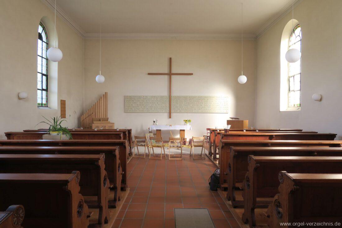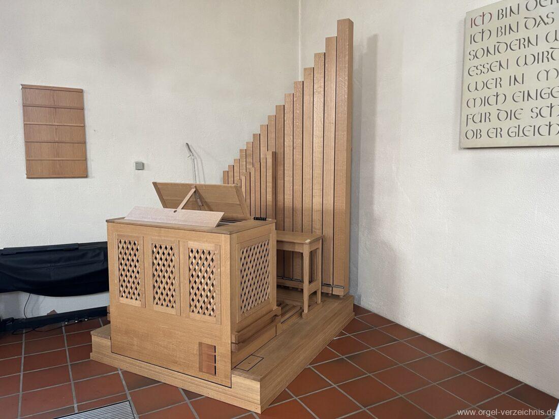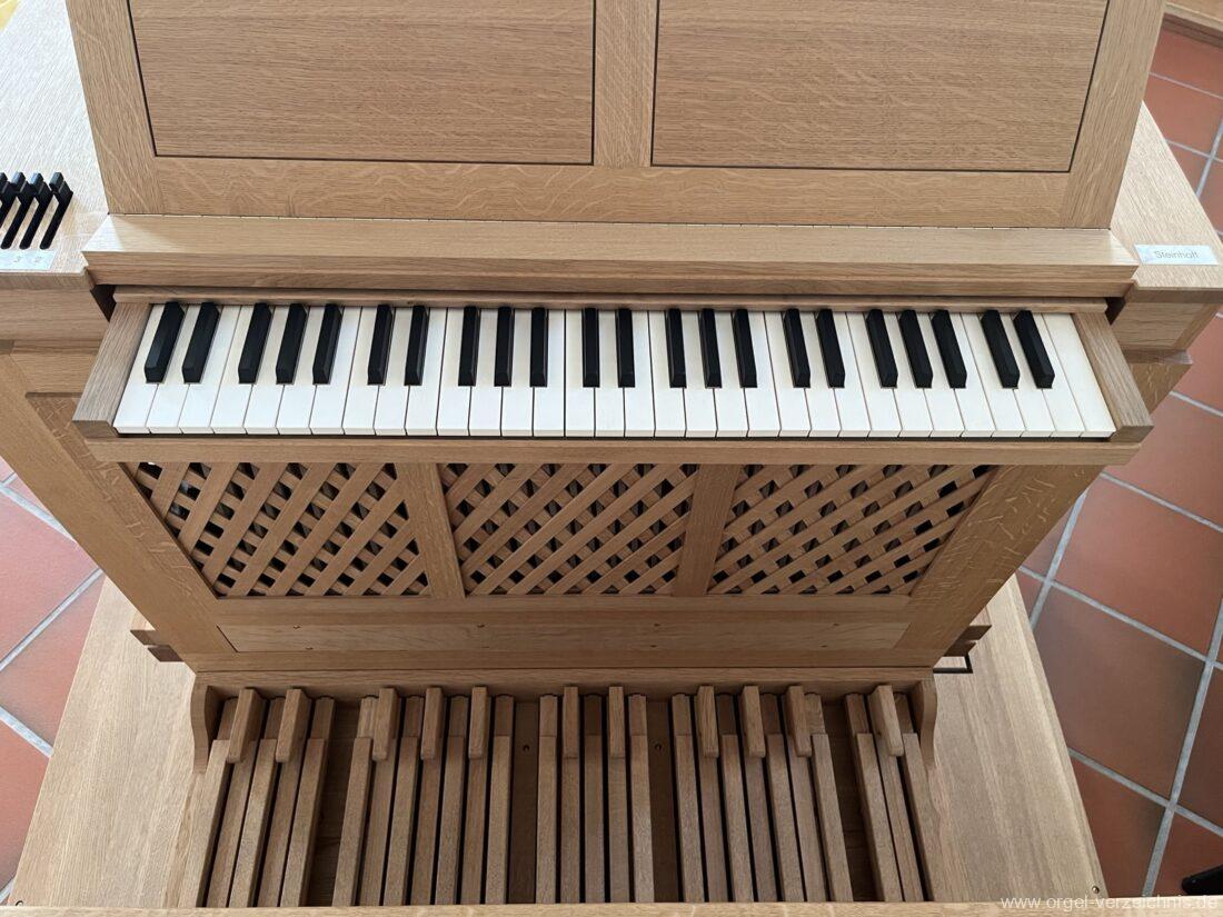 2022 mechanische Schleifladenorgel mit Schleifenteilung, erbaut in der Art einer Truhenorgel (Eichenholz-Gehäuse) mit angehängtem Pedal und eigenem Pedalregister durch Orgelbau Jens Steinhoff (Schwörstadt) I/6 aP. Die Truhenorgel kann separiert werden und in anderen Kirchen der Region zu Konzerten und Veranstaltungen genutzt werden – Einweihung am 13. März 2022 mit LKMD Christoph Bogon.