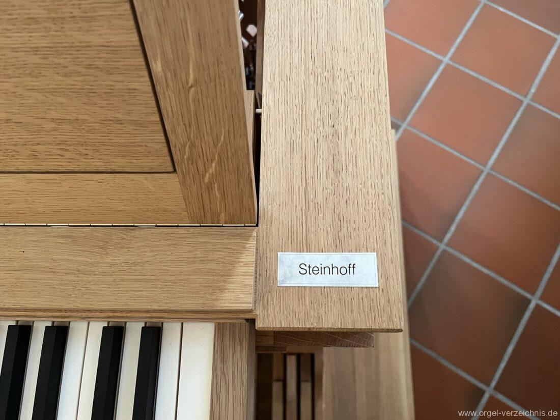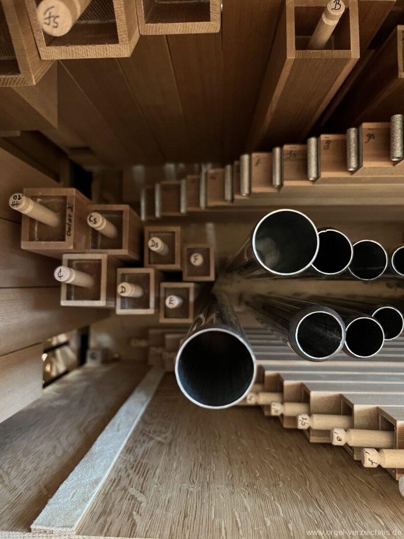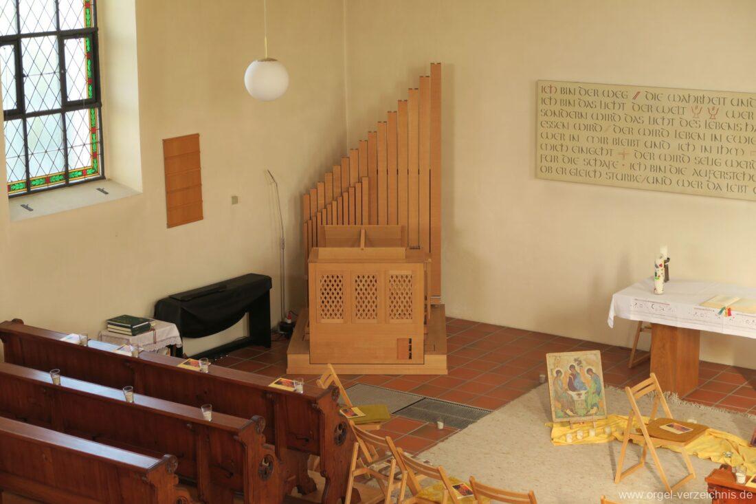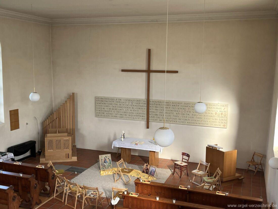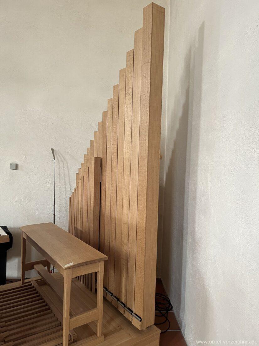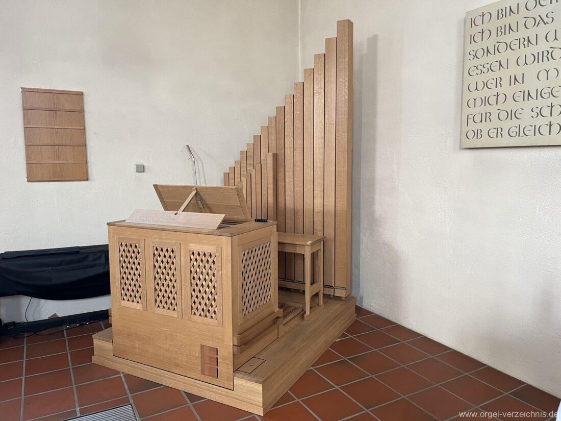 2022 mechanische Schleifladenorgel mit Schleifenteilung, erbaut in der Art einer Truhenorgel (Eichenholz-Gehäuse) mit angehängtem Pedal und eigenem Pedalregister durch Orgelbau Jens Steinhoff (Schwörstadt) I/6 aP. Die Truhenorgel kann separiert werden und in anderen Kirchen der Region zu Konzerten und Veranstaltungen genutzt werden – Einweihung am 13. März 2022 mit LKMD Christoph Bogon.