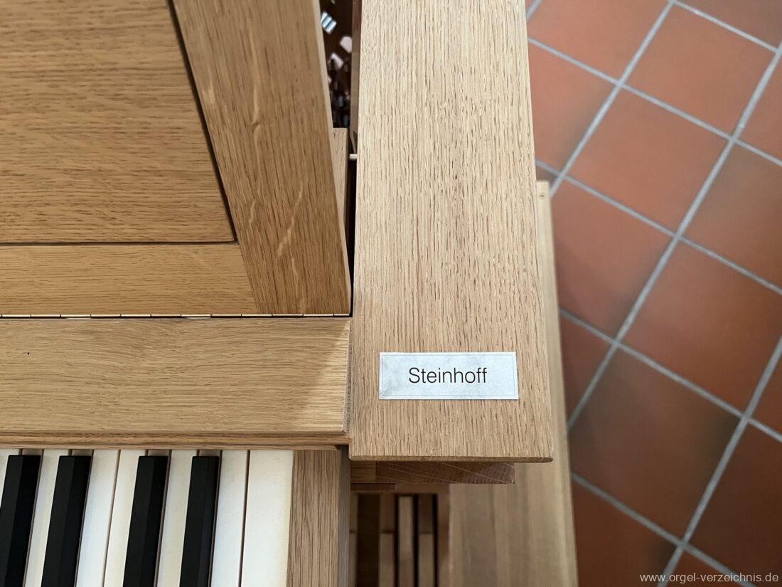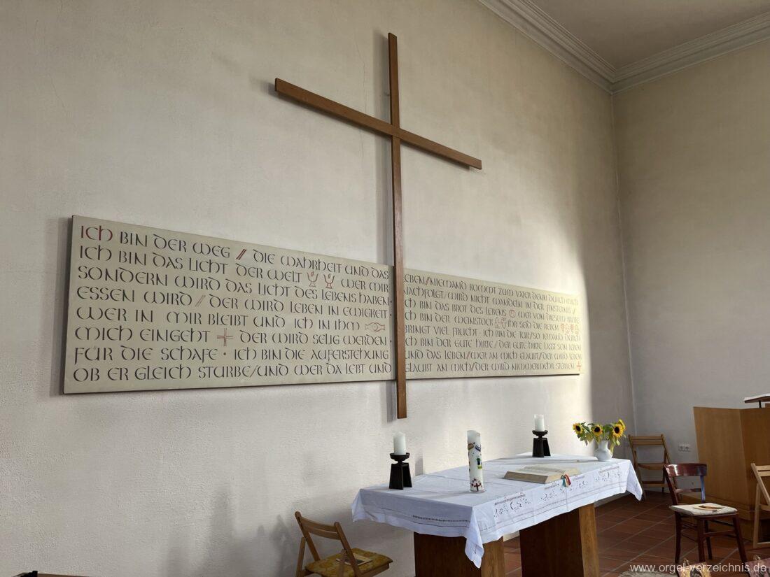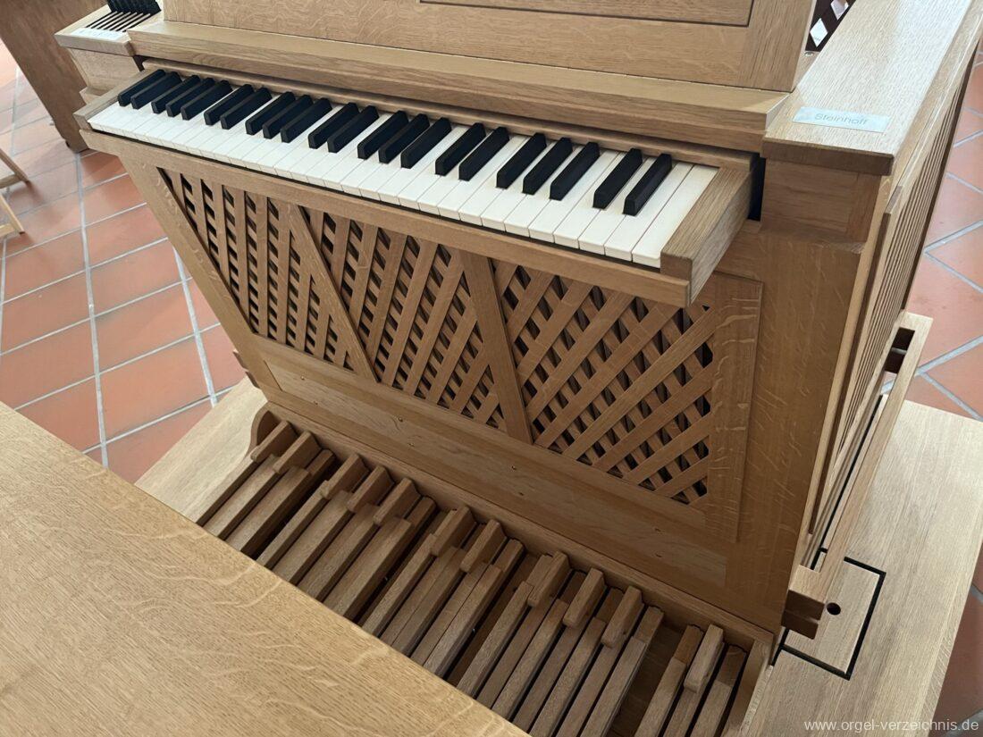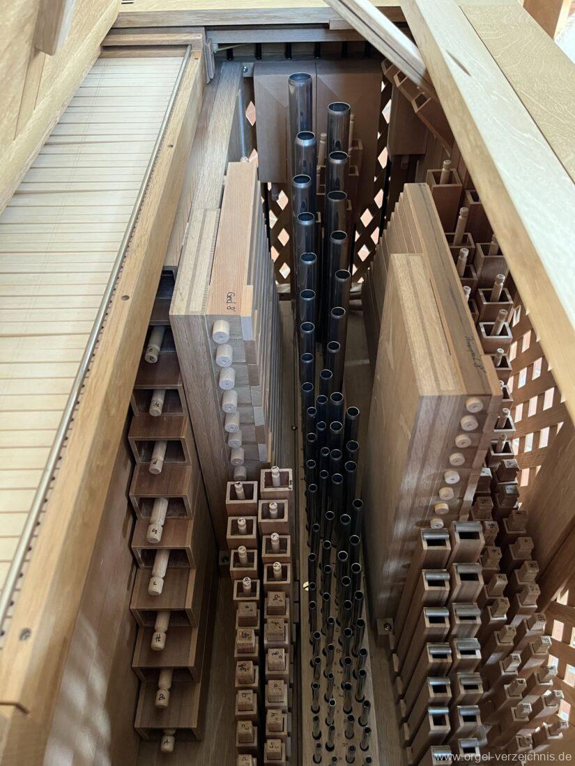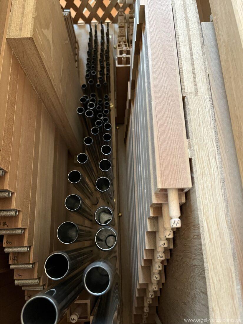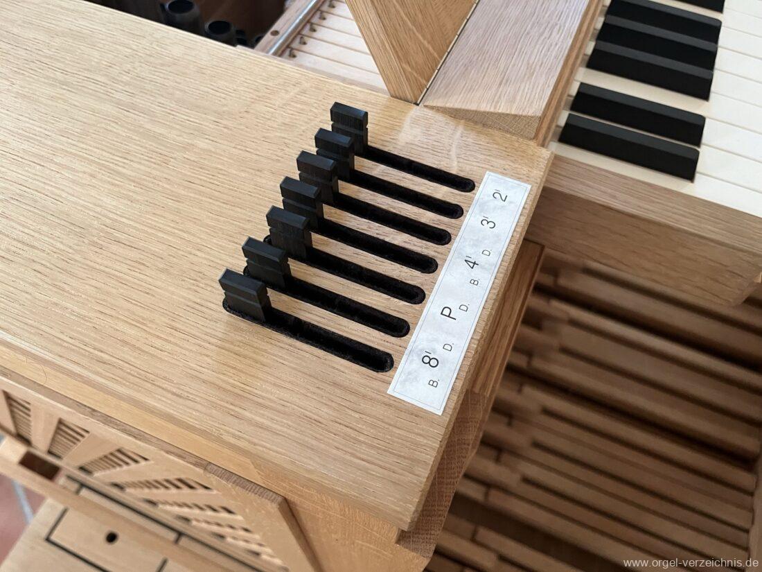 2022 mechanische Schleifladenorgel mit Schleifenteilung, erbaut in der Art einer Truhenorgel (Eichenholz-Gehäuse) mit angehängtem Pedal und eigenem Pedalregister durch Orgelbau Jens Steinhoff (Schwörstadt) I/6 aP. Die Truhenorgel kann separiert werden und in anderen Kirchen der Region zu Konzerten und Veranstaltungen genutzt werden – Einweihung am 13. März 2022 mit LKMD Christoph Bogon.