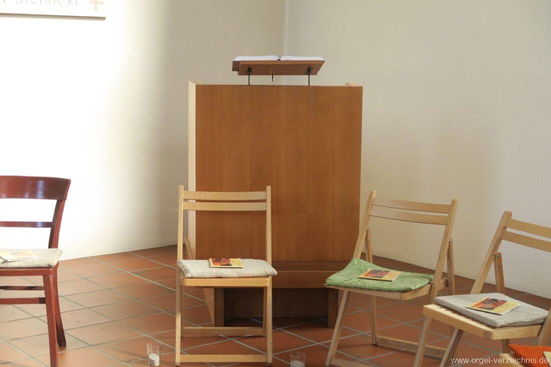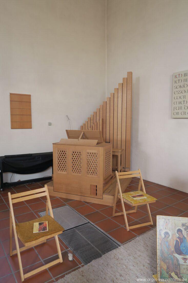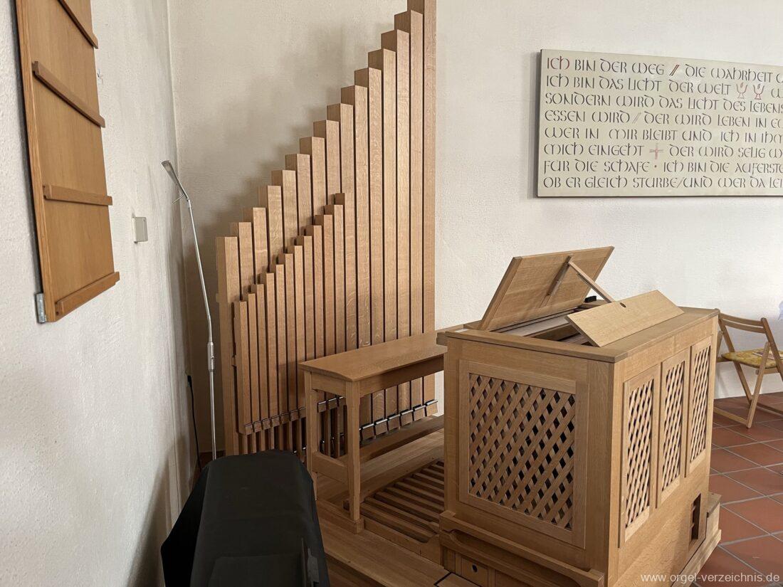 1963 mechanisches Schleifladenpositiv, erbaut von Orgelbauer Wilhelm Wagner (Grötzingen/Baden) I/3 ohne Pedal.