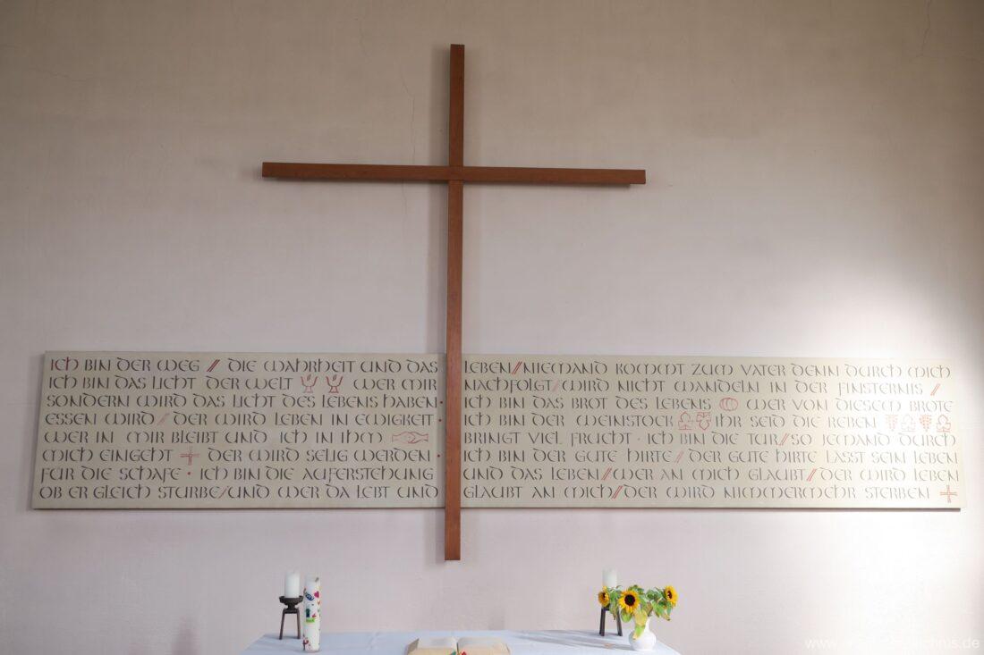 1963 umfangreiche Kirchenrenovierung mit Neugestaltung des Innenraumes, u.a. Entfernung von Kanzel und Sakristei, Ersatz des bisherigen Altares.