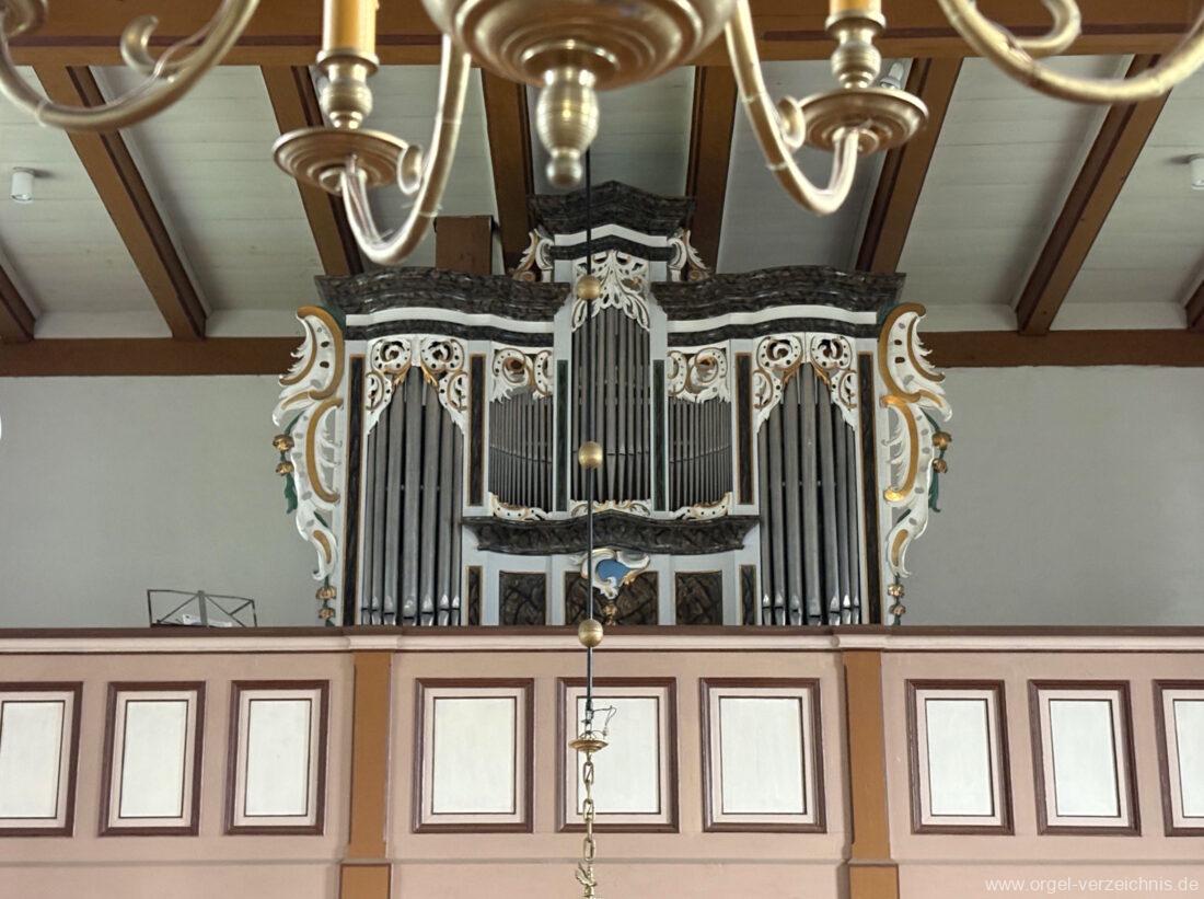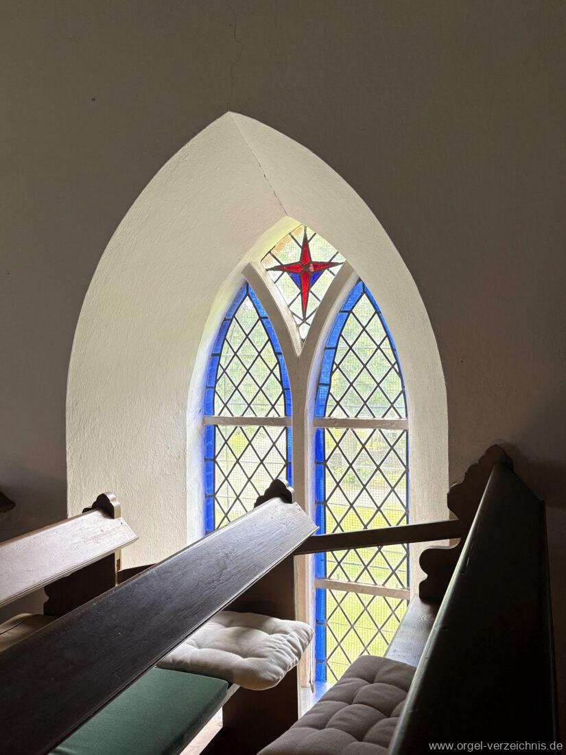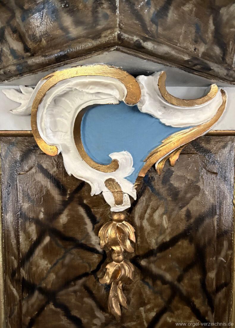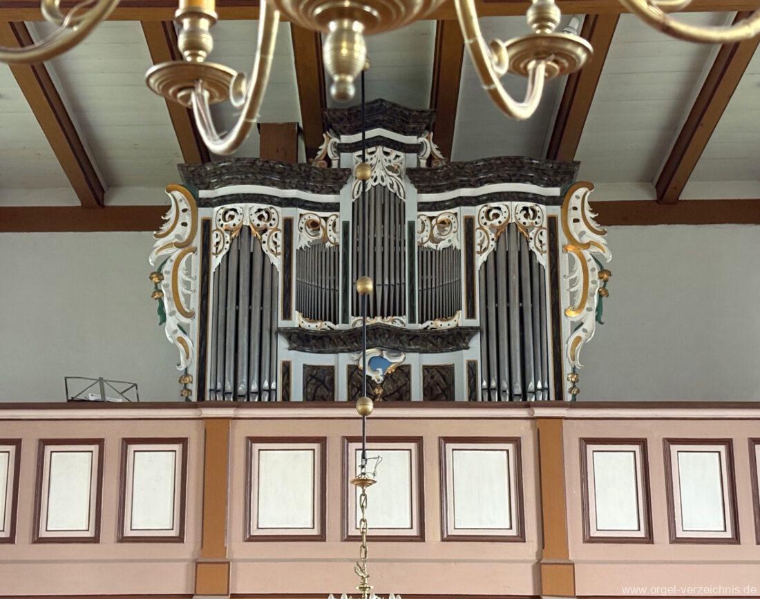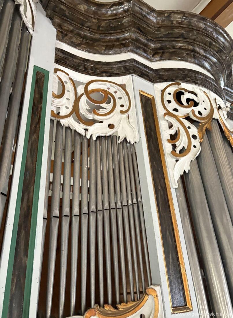Manual C – c“‘Gedackt 8′ Holz ged. neu, ab c‘ Metall ged. neu Prinzipal 4′ C Holz offen, CS – c“‘ Metall Prospekt – Anm. 1 Flöte 4′ C – H holz ged., ab c° Metall konisch Schwiegel 2′ Metall Quinte 1 1/3′ neu Metall Mixtur 3-4f 1 1/3′ – rep. c°/c’/f“, ab c° 4f