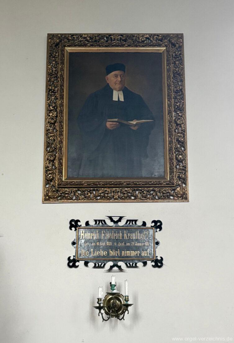 1969 Neuaufbau des Instrumentes mit grösstenteils neuem und gebrauchten Pfeifenwerkes durch Orgelbauer Günter Bahr (Weimar/Apolda) I/7 in das bestehende historische Gehäuse mit seitlich (linke Seite) fest eingebautem Spielschrank und mechanischen Schleifladen. Ein Teil der Register stammt aus der Orgel der Marienkirche Usedom, dort führte Bahr 1969 eine Umdisponierung der Grüneberg-Orgel aus.