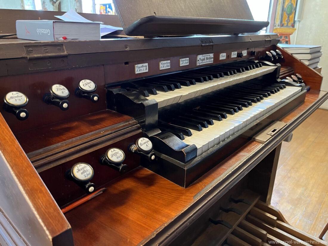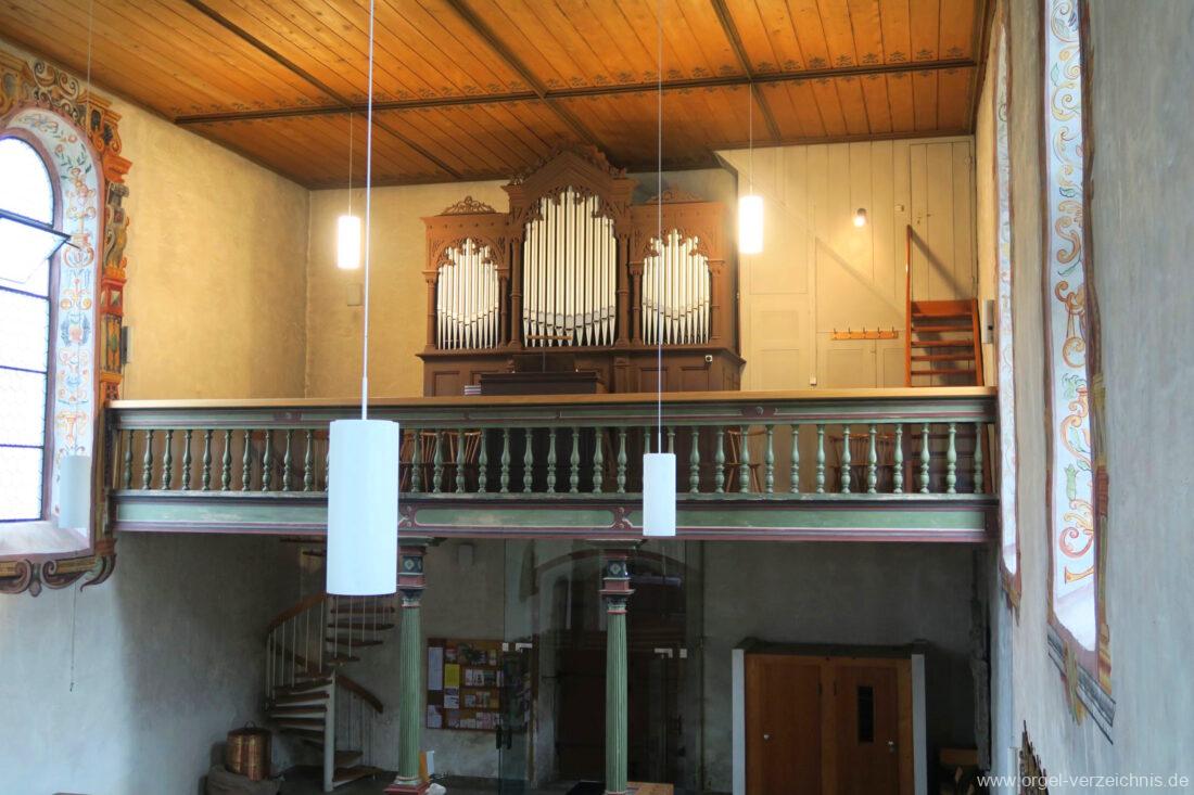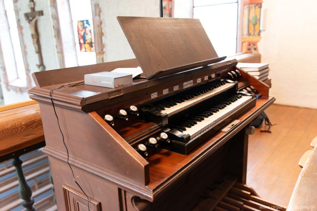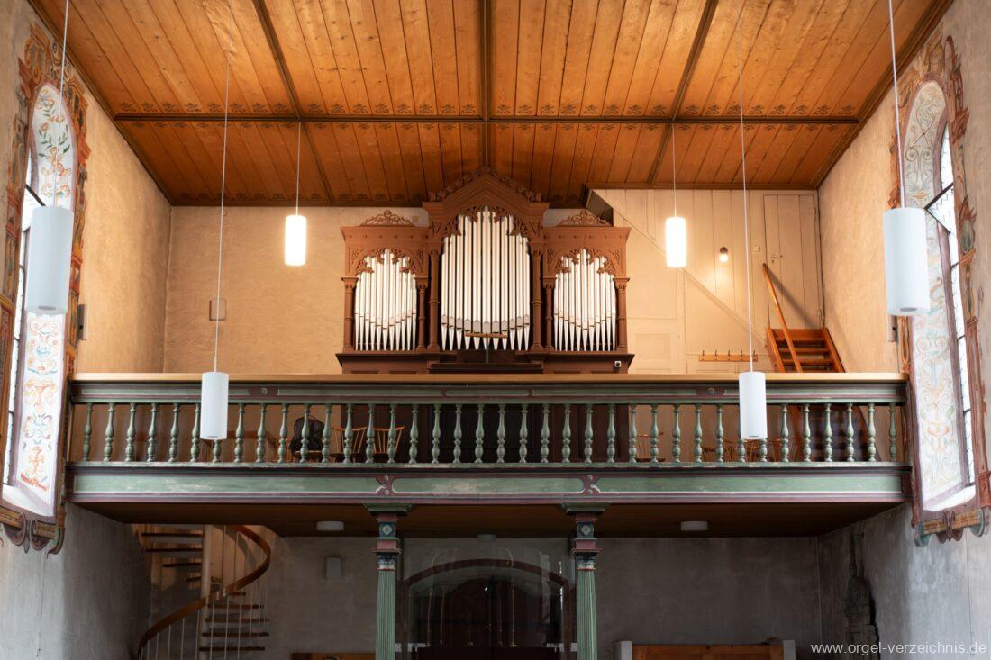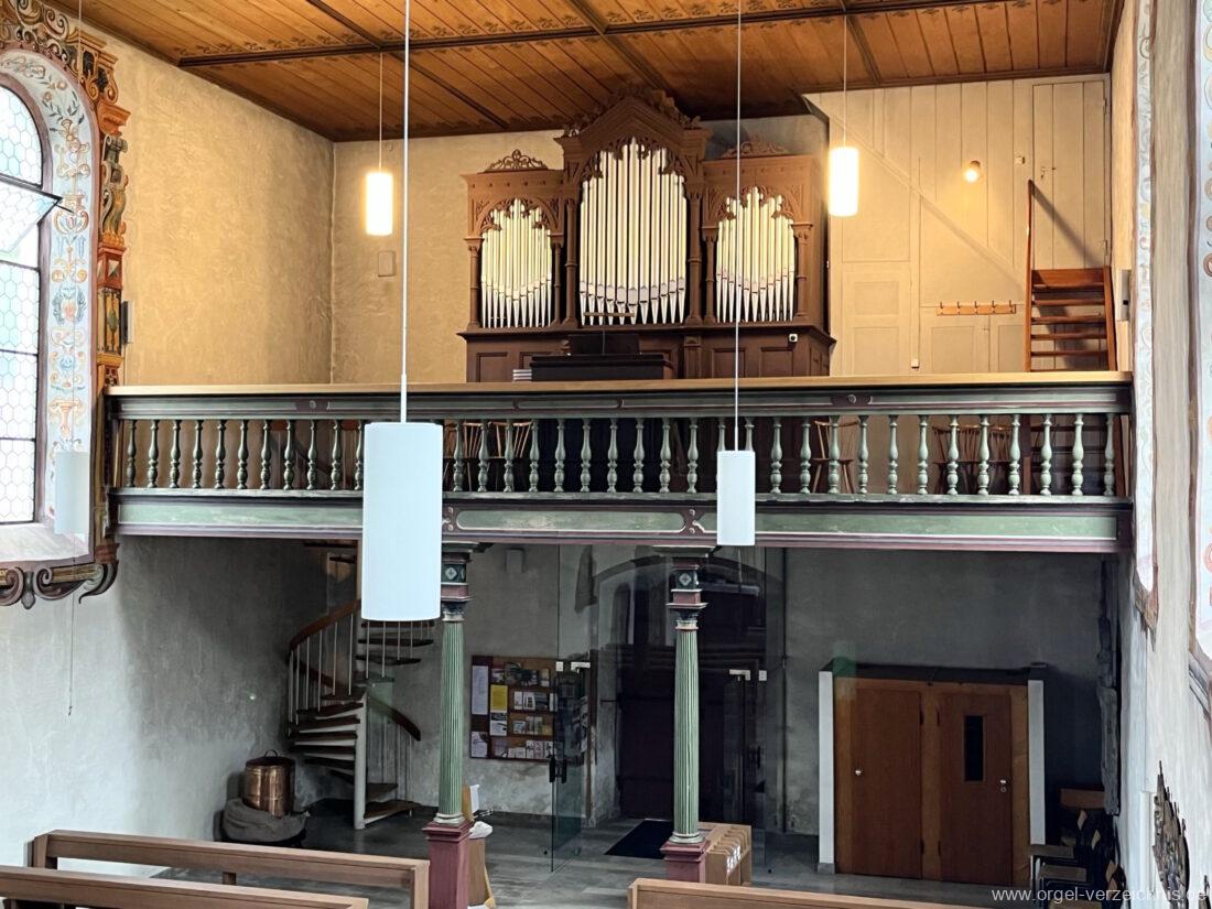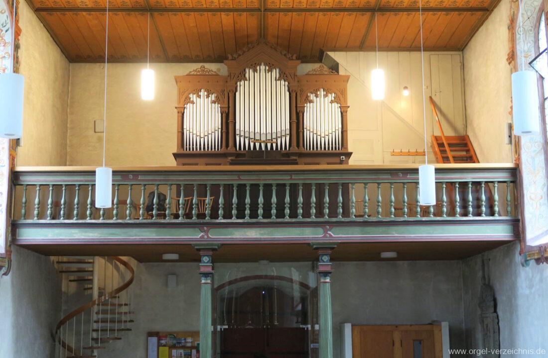 Orgelgeschichte: Orgelarchiv Schmidt – Horst Georg Schmidt „Die Orgeln des Landkreises Waldshut“ 1989 Seite 103, eigene Sichtung, Spiel und Bestandesaufnahme 2023