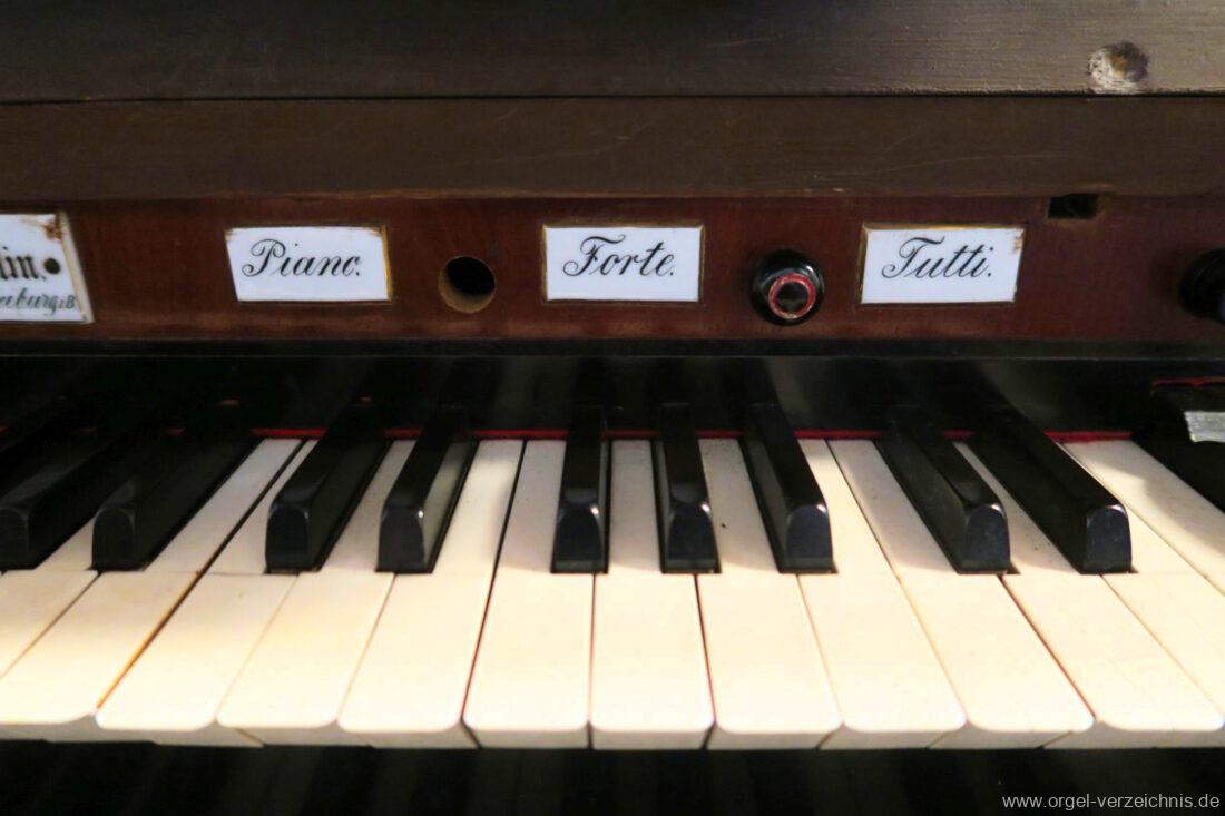 HW: Principal . 8.‘ / Flöte . 8.‘ / Oktav. 4.‘ / Piffaro 4′ u. 2′ / Mixtur 1 1/3′
