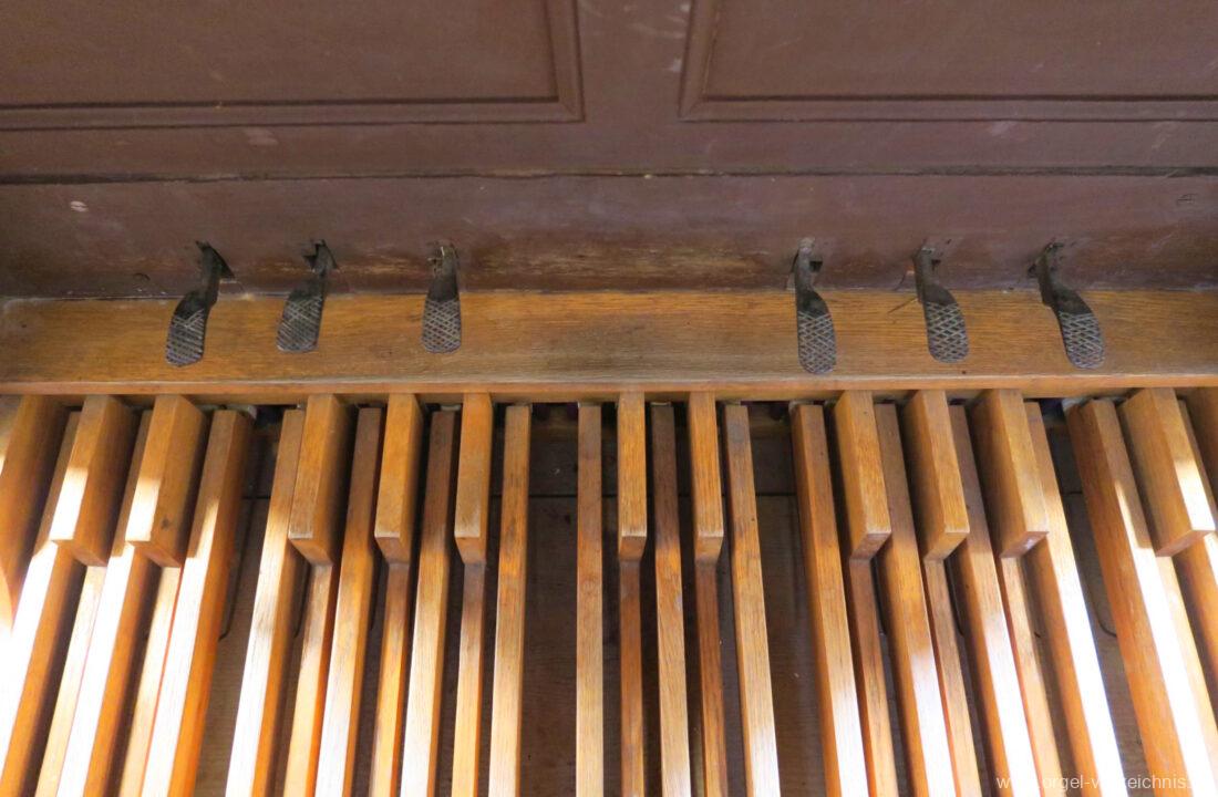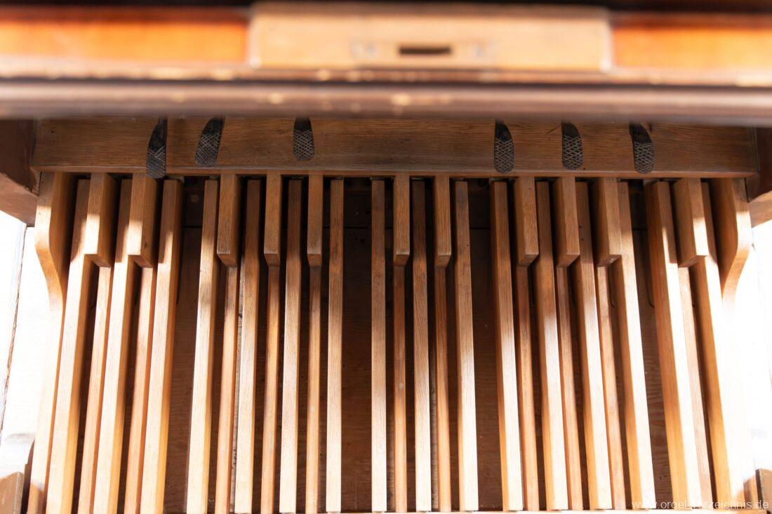 Pedal C – d‘Subbass. 16.‘ Holz ged. Offenbaß 8′ Holz offen |