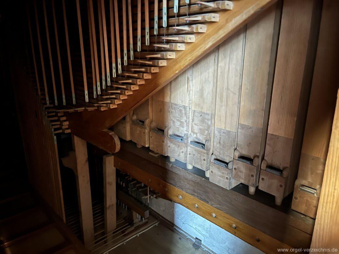 Für zwei der festen Kombinationen gab es wohl ursprünglich noch Schaltungen oberhalb des zweiten Manuals, welche inzwischen ausser Funktion sind.