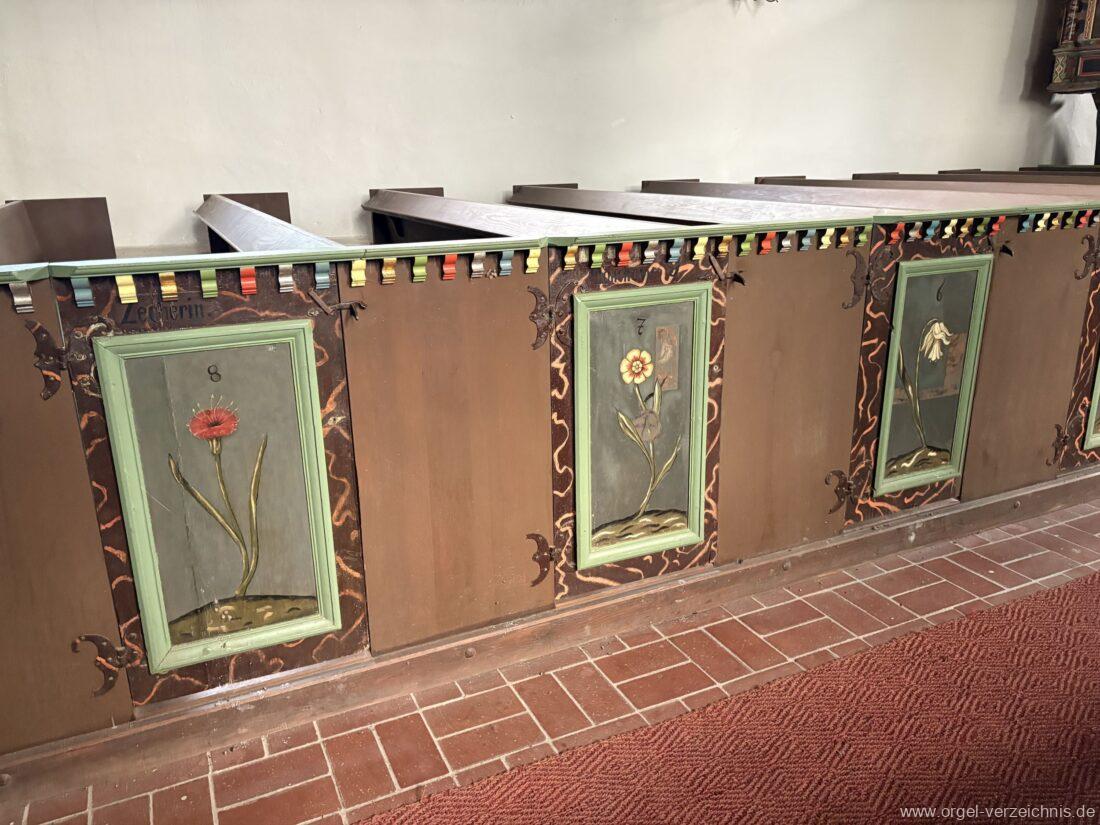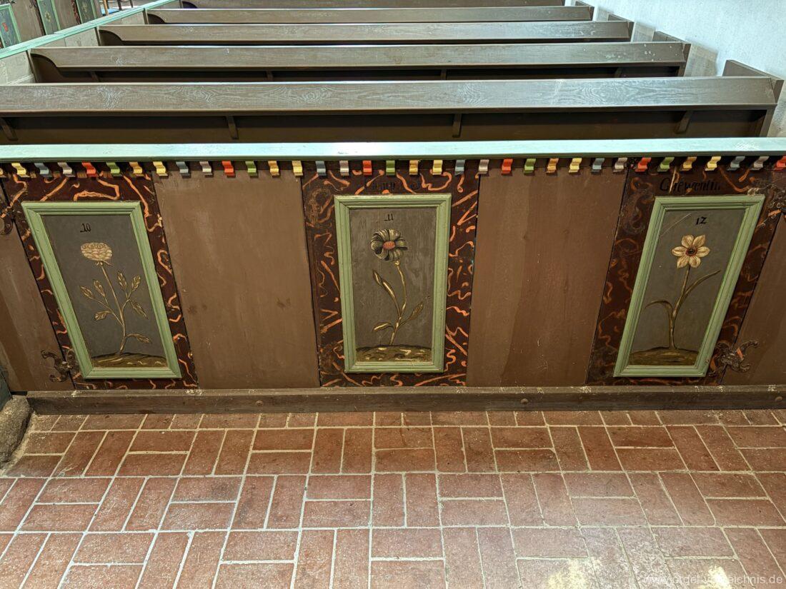 1769 Bemalung des Gestühls durch Peter Christoph Hirte (Usedom).