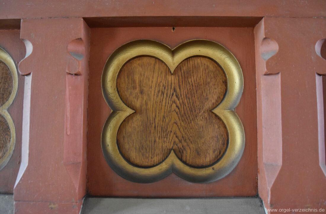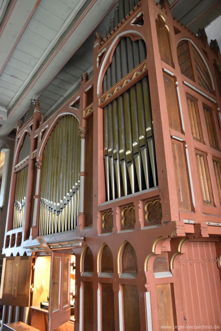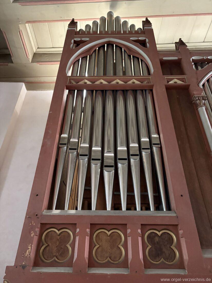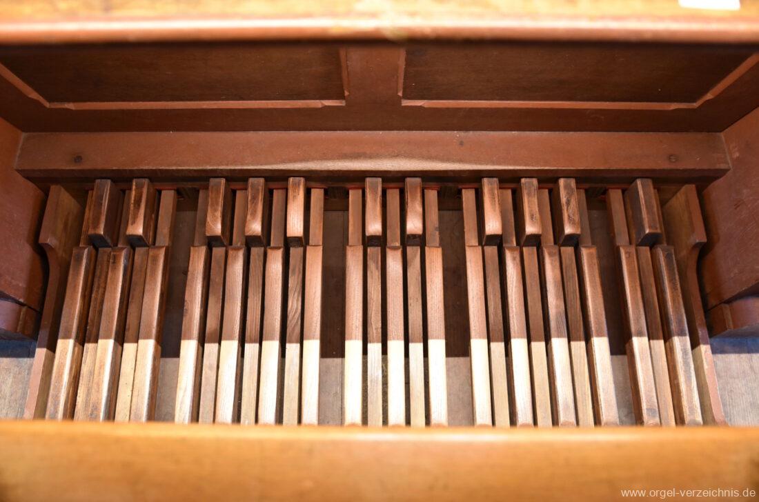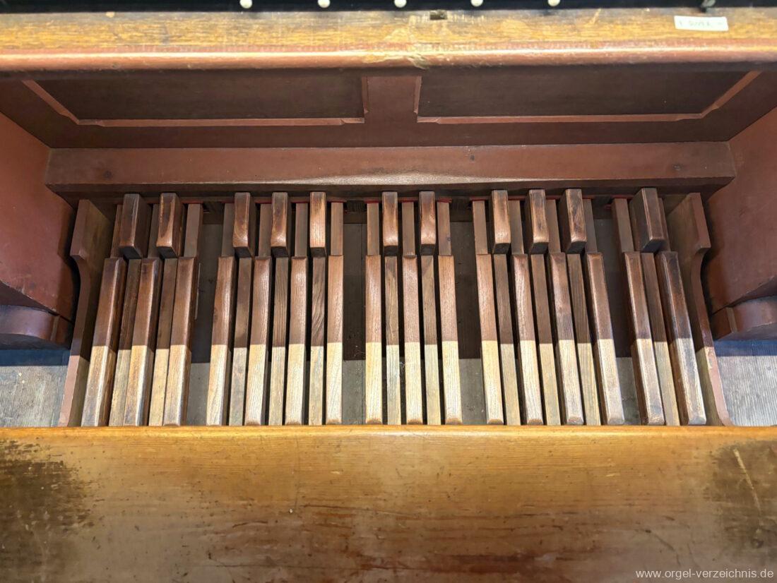 I Hauptwerk C – f“‘Prinzipal 8′ Rohrflöte 8′ Oktave 4′ Spitzflöte 4′ Schwiegel 2′ Mixtur 3-4 fach – rep. c“/d“‘, ab c‘ 4 fach