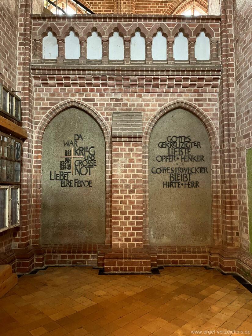 2025 Restaurierung und Rekonstruktion der Orgel durch Mecklenburger Orgelbau Andreas Arnold (Plau am See) II/14. Dabei werden die gelagerten Register wieder verwendet und die fehlenden Stimmen ergänzt. Die stummen Prospektpfeifen werden optisch überarbeitet. Die Expertise oblag OSV Stefan Zeitz (Greifswald), welcher das Instrument am 28. Juni mit einem Konzert eingeweiht hatte.