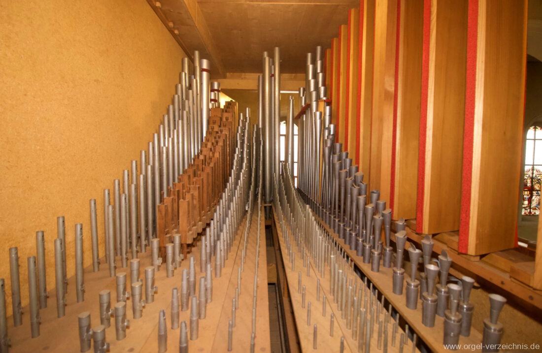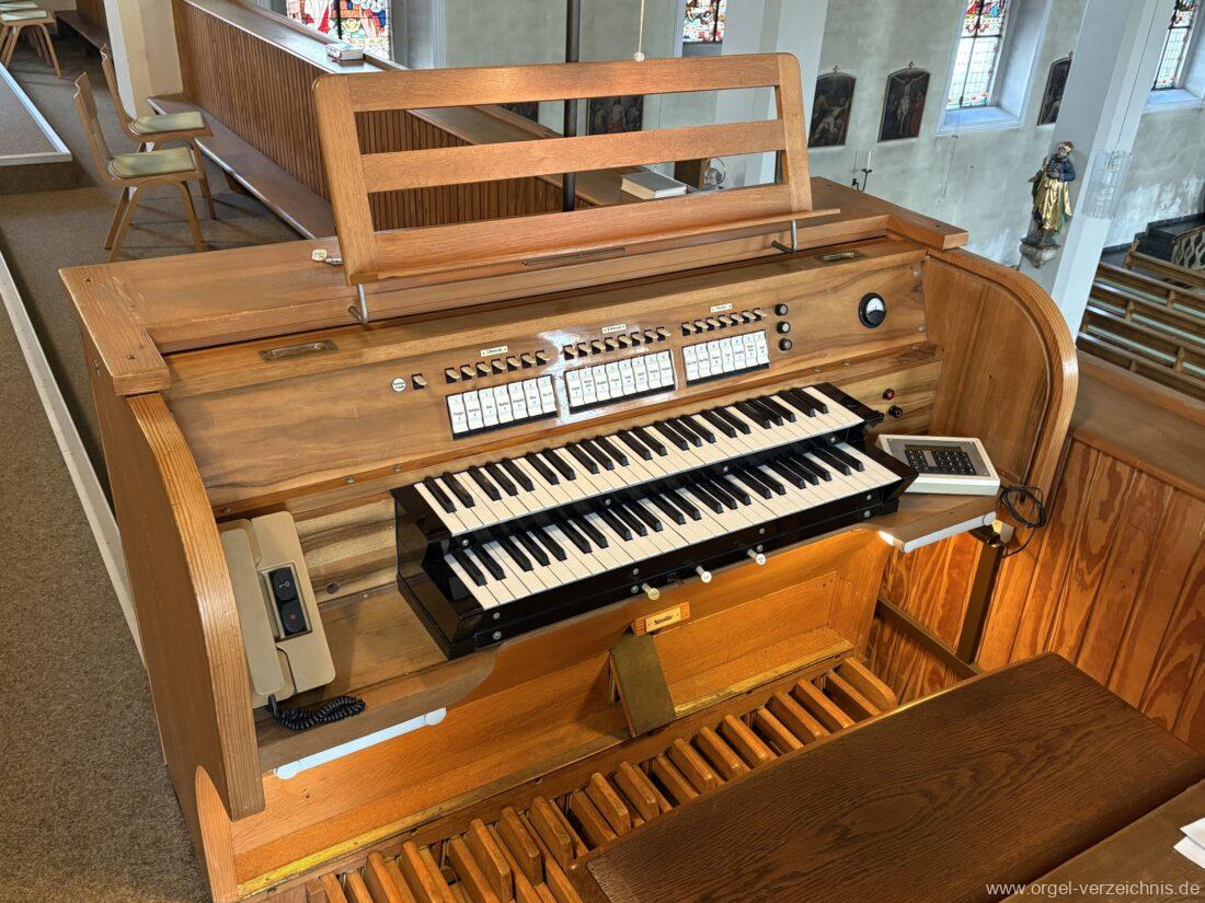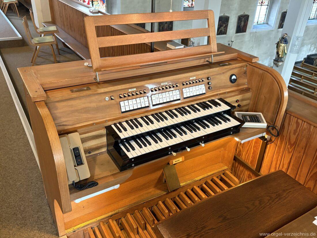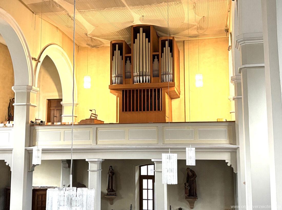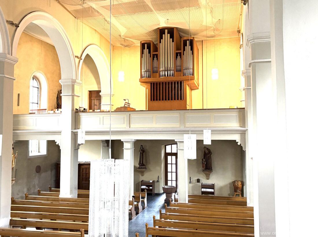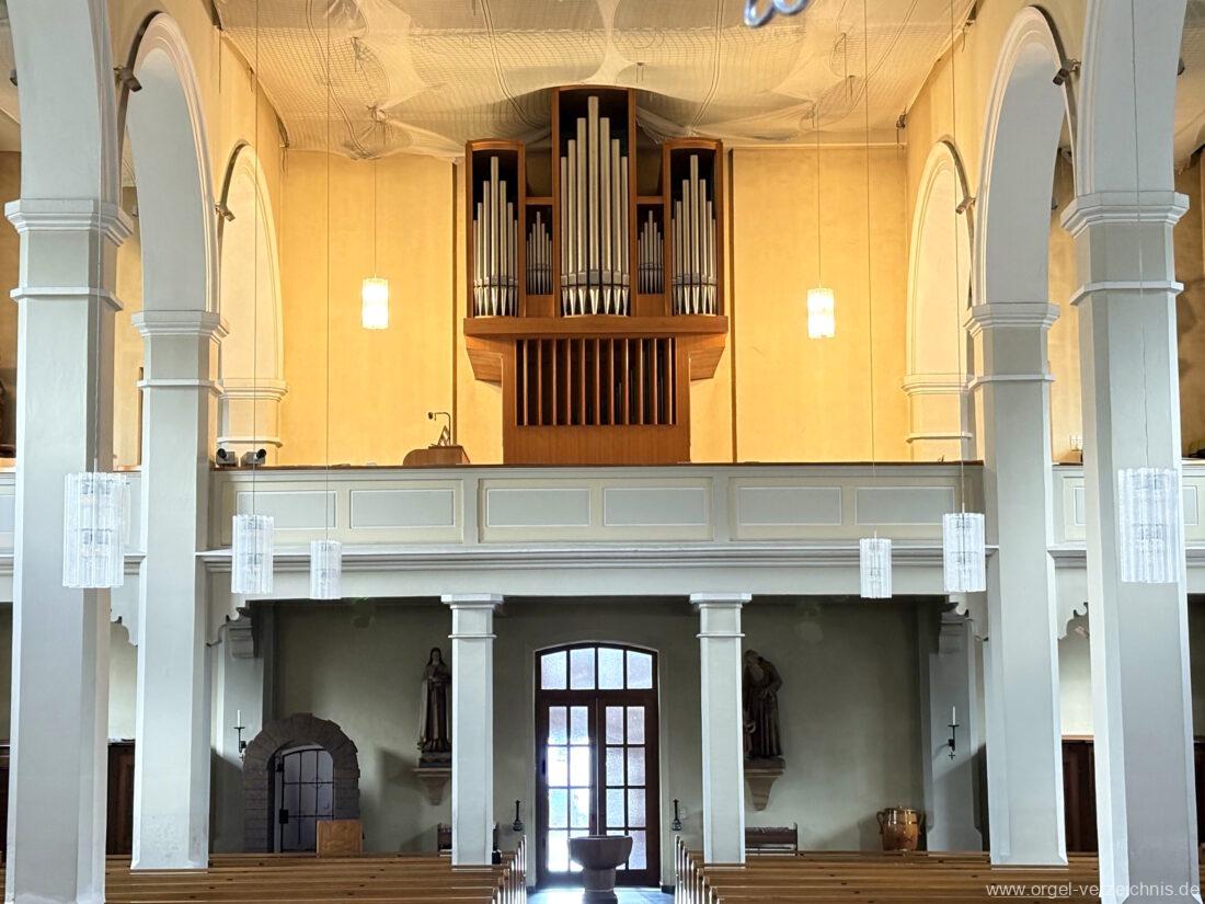 1963 Kegelladenorgel mit seitlich freistehendem Spieltisch und rein elektrischer Traktur, erbaut unter Verwendung von Material der Vorgängerorgel und einiger Register der alten Orgel aus Todtnau (Schwarz 1898/1943) durch Orgelbau Xaver Mönch Söhne (Überlingen/Bodensee) II/18. Circa die Hälfte des Pfeifenwerks ist Altbestand. Einweihung der Orgel am 15. Dezember 1963.