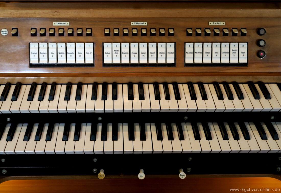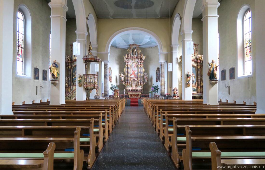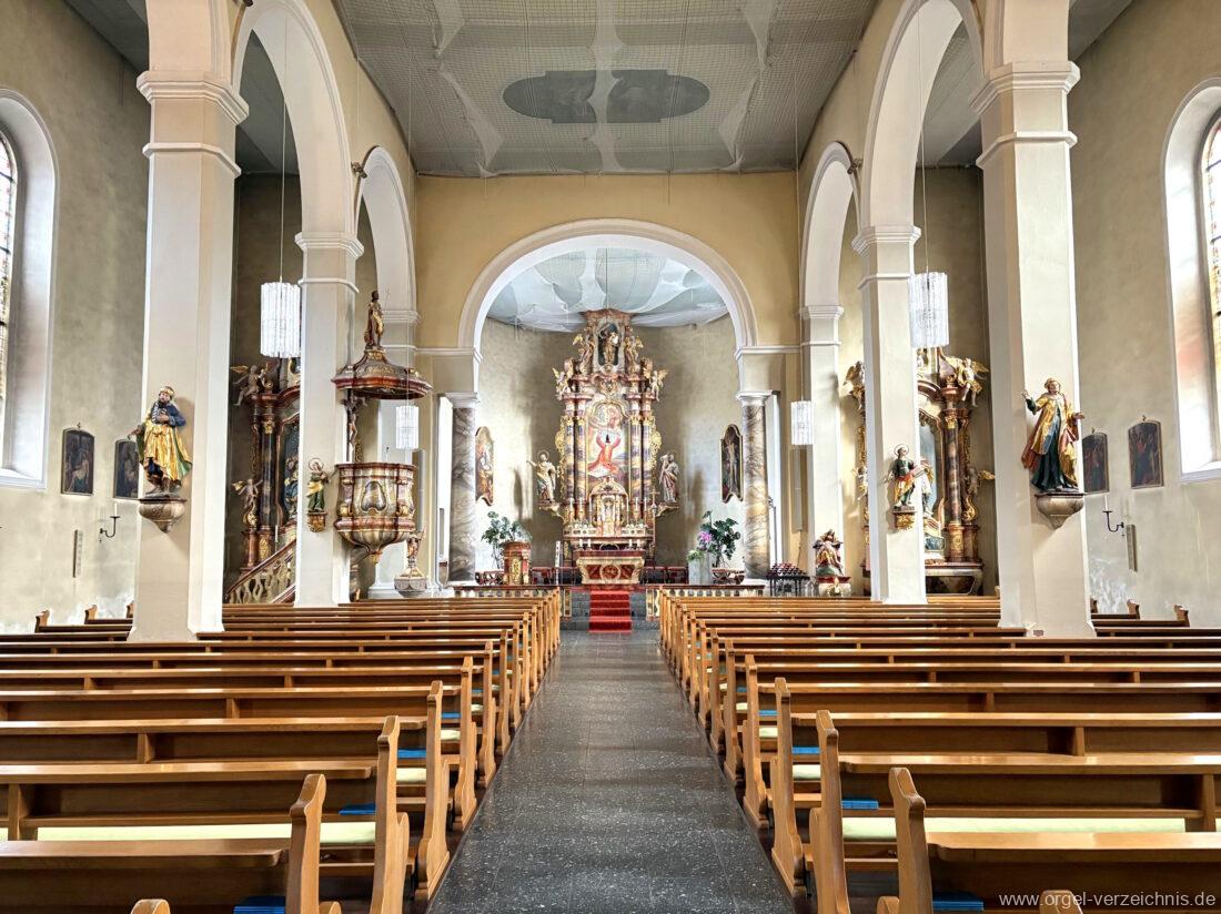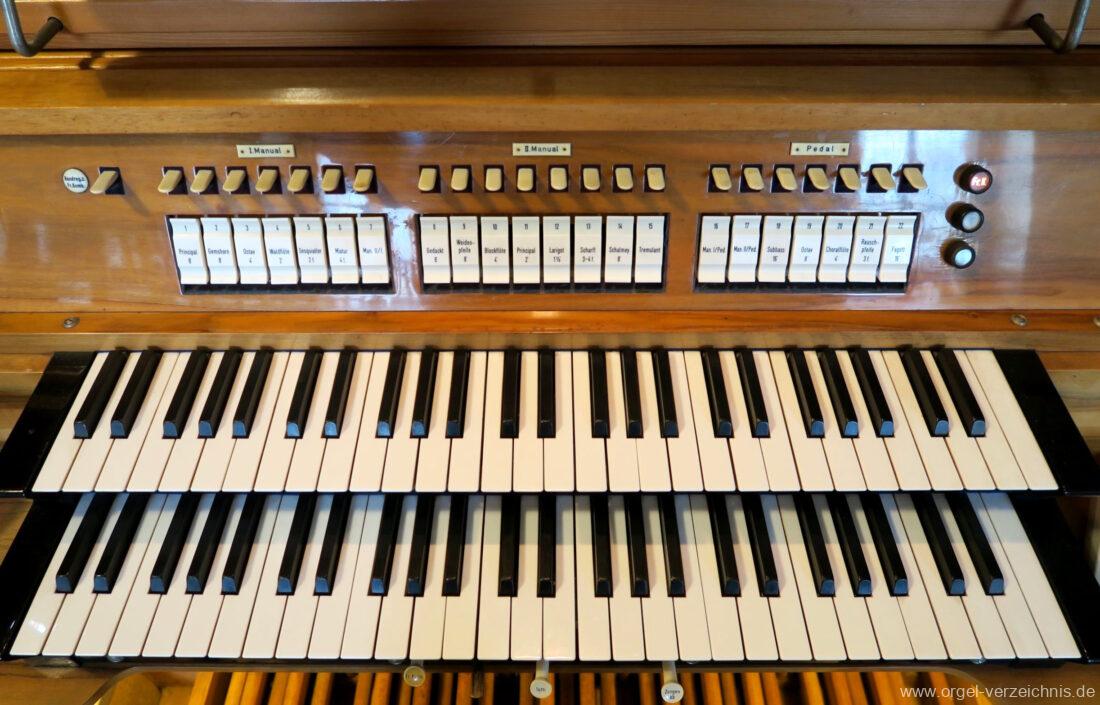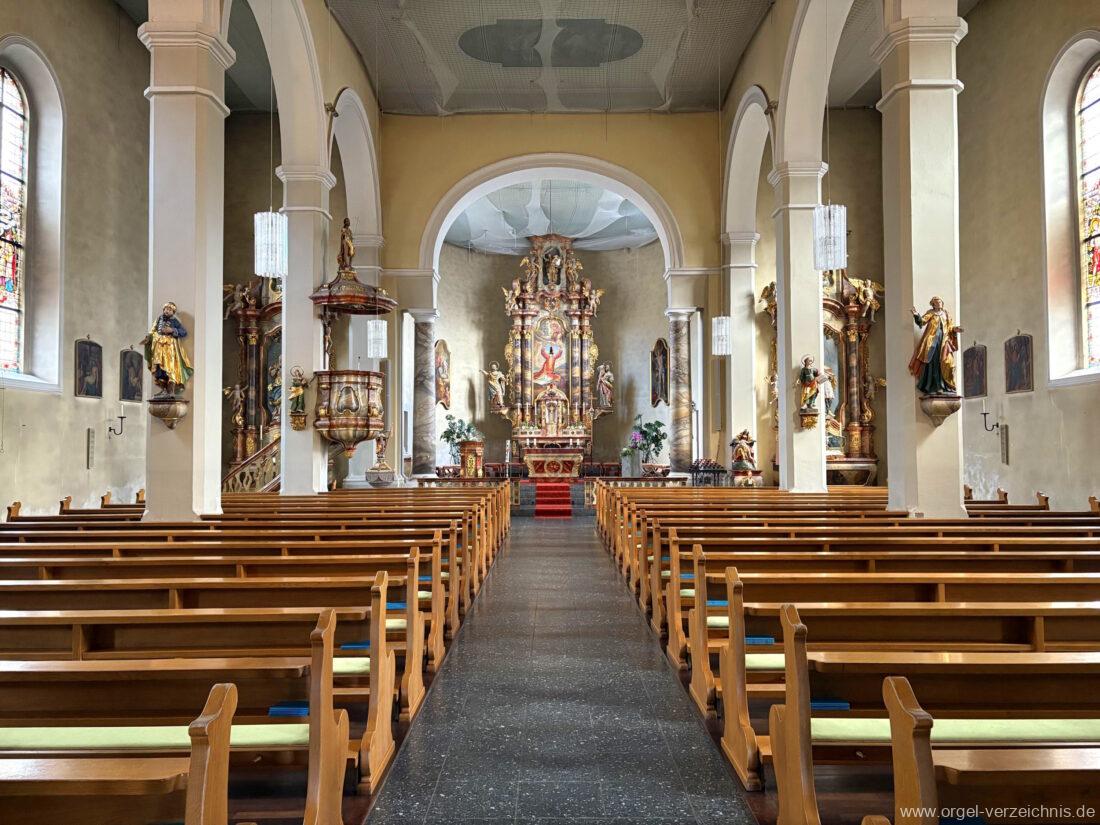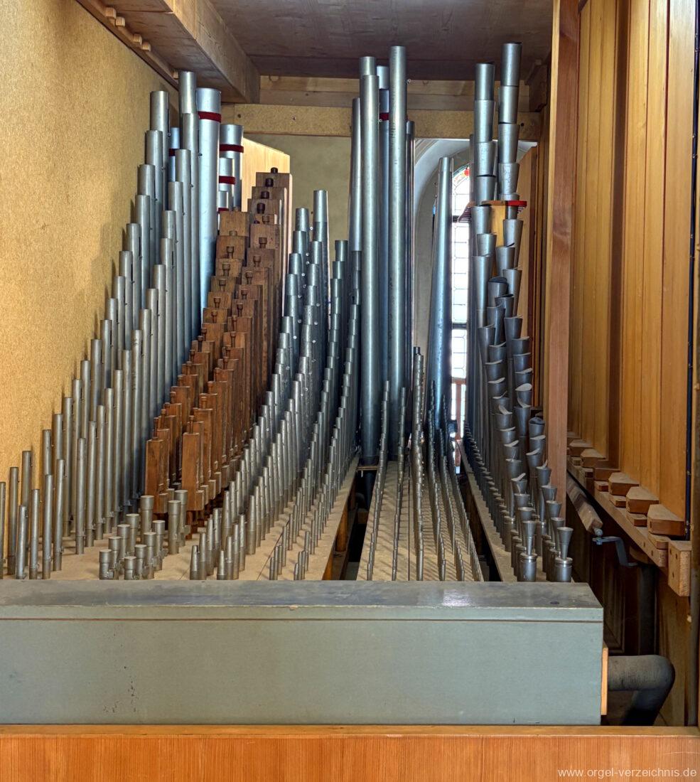 1963 Kegelladenorgel mit seitlich freistehendem Spieltisch und rein elektrischer Traktur, erbaut unter Verwendung von Material der Vorgängerorgel und einiger Register der alten Orgel aus Todtnau (Schwarz 1898/1943) durch Orgelbau Xaver Mönch Söhne (Überlingen/Bodensee) II/18. Circa die Hälfte des Pfeifenwerks ist Altbestand. Einweihung der Orgel am 15. Dezember 1963.