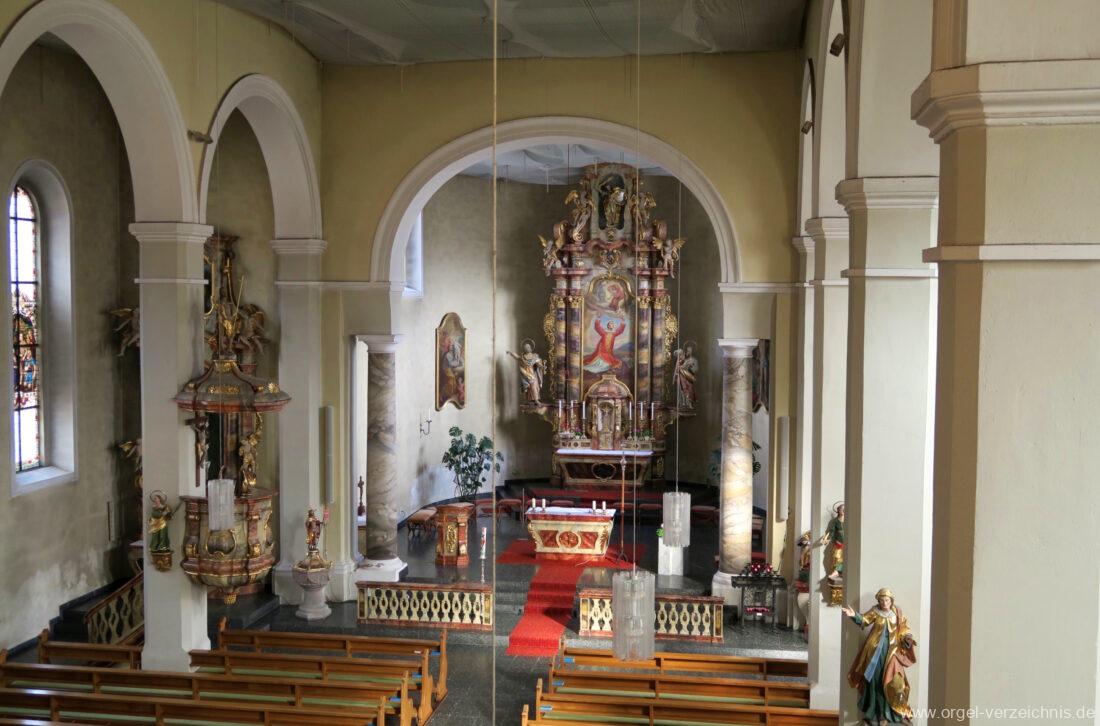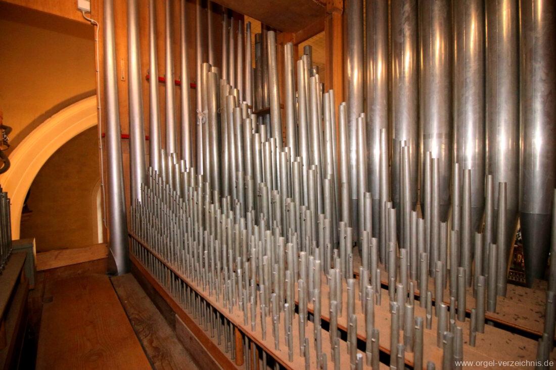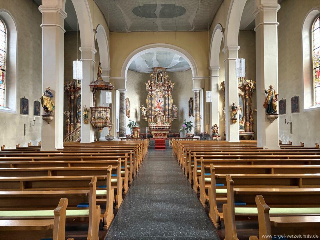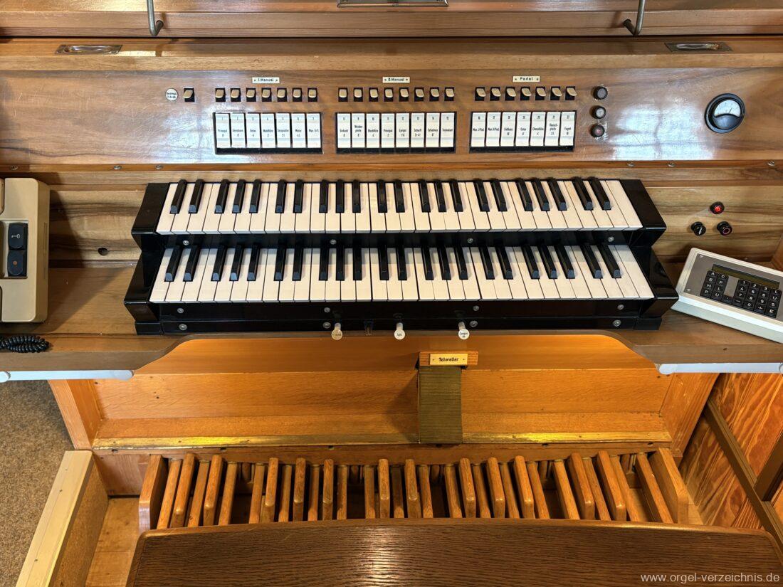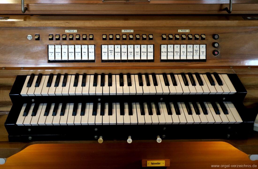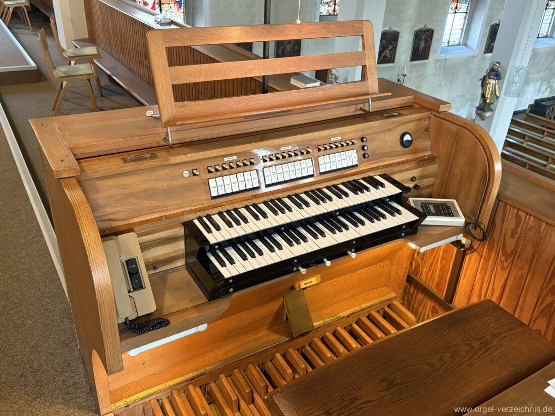 1963 Kegelladenorgel mit seitlich freistehendem Spieltisch und rein elektrischer Traktur, erbaut unter Verwendung von Material der Vorgängerorgel und einiger Register der alten Orgel aus Todtnau (Schwarz 1898/1943) durch Orgelbau Xaver Mönch Söhne (Überlingen/Bodensee) II/18. Circa die Hälfte des Pfeifenwerks ist Altbestand. Einweihung der Orgel am 15. Dezember 1963.