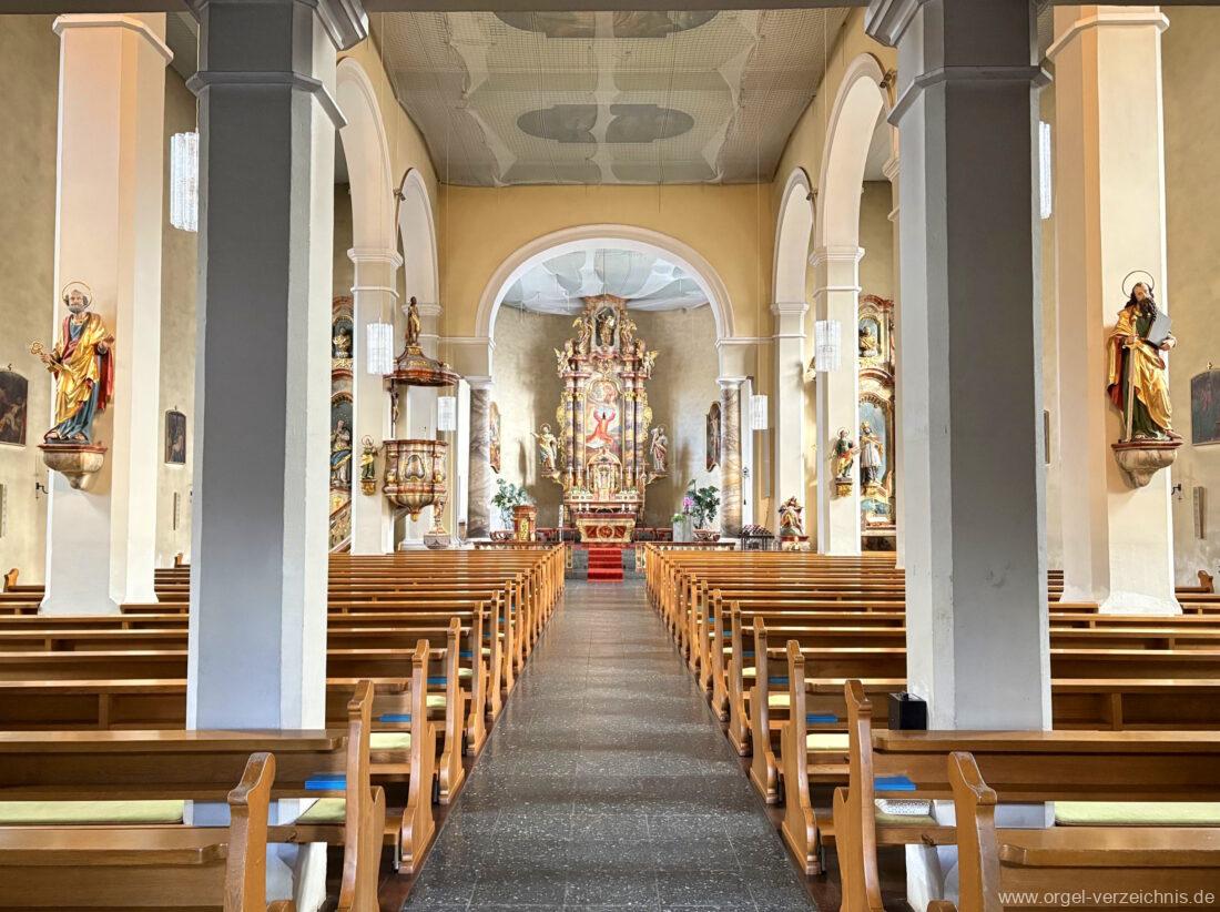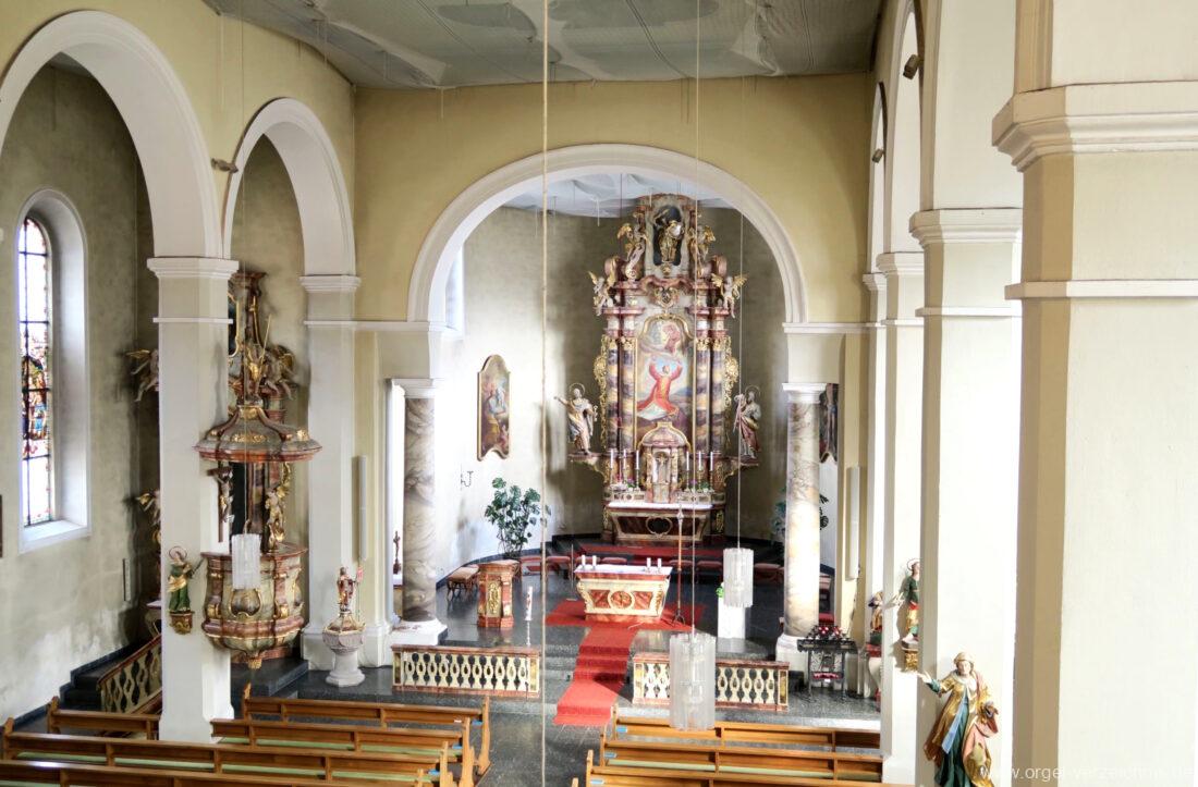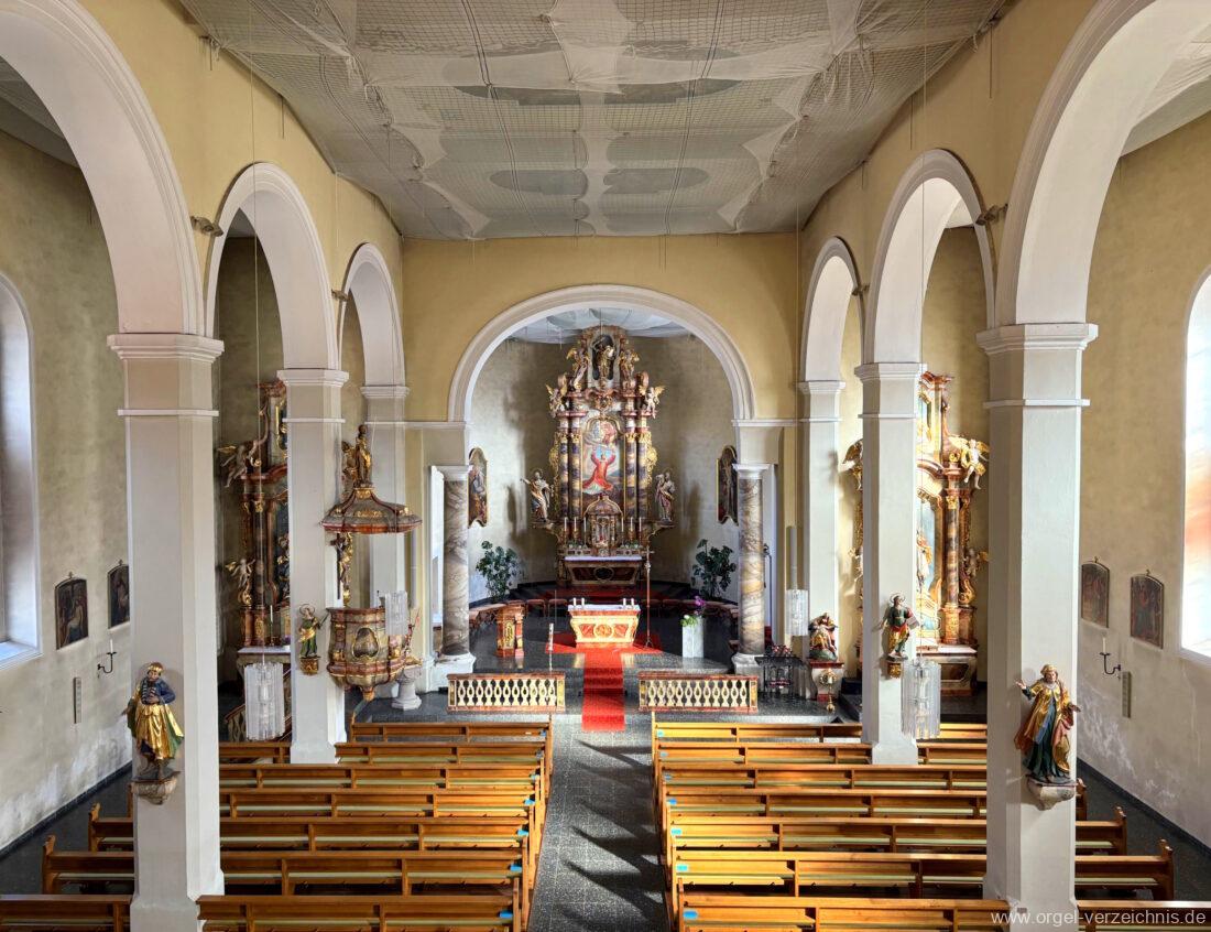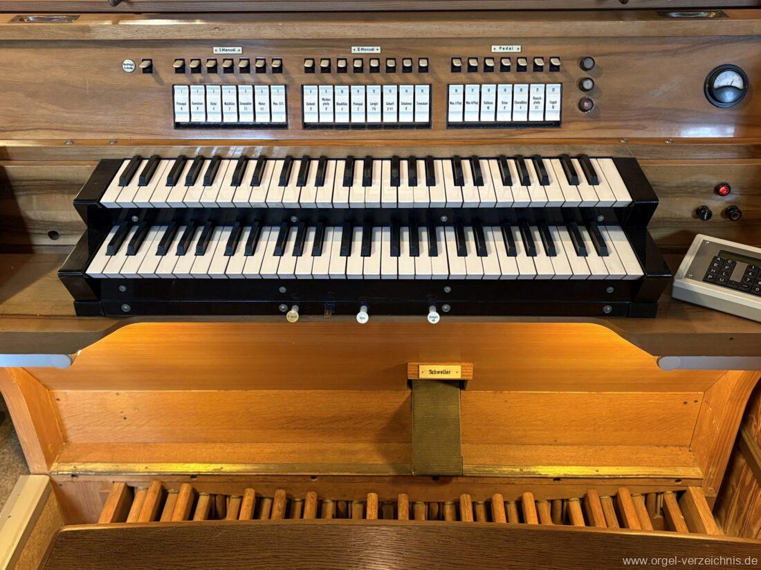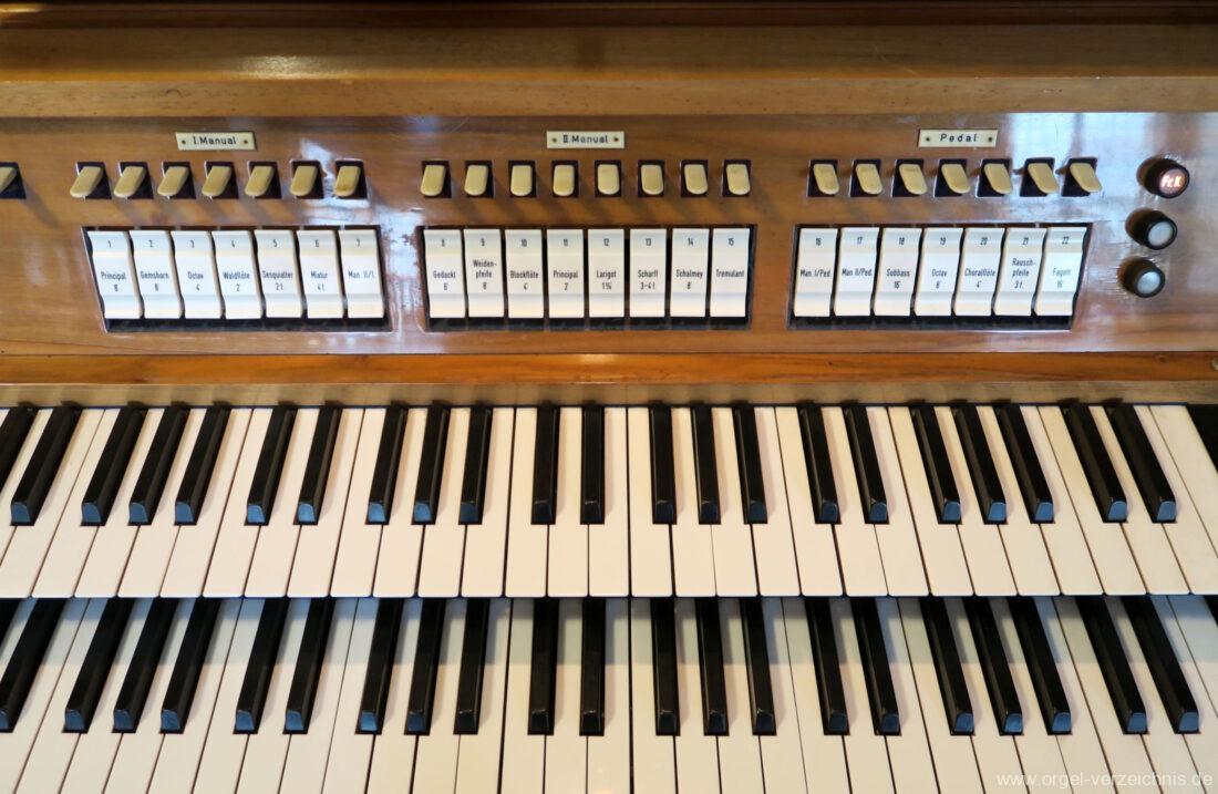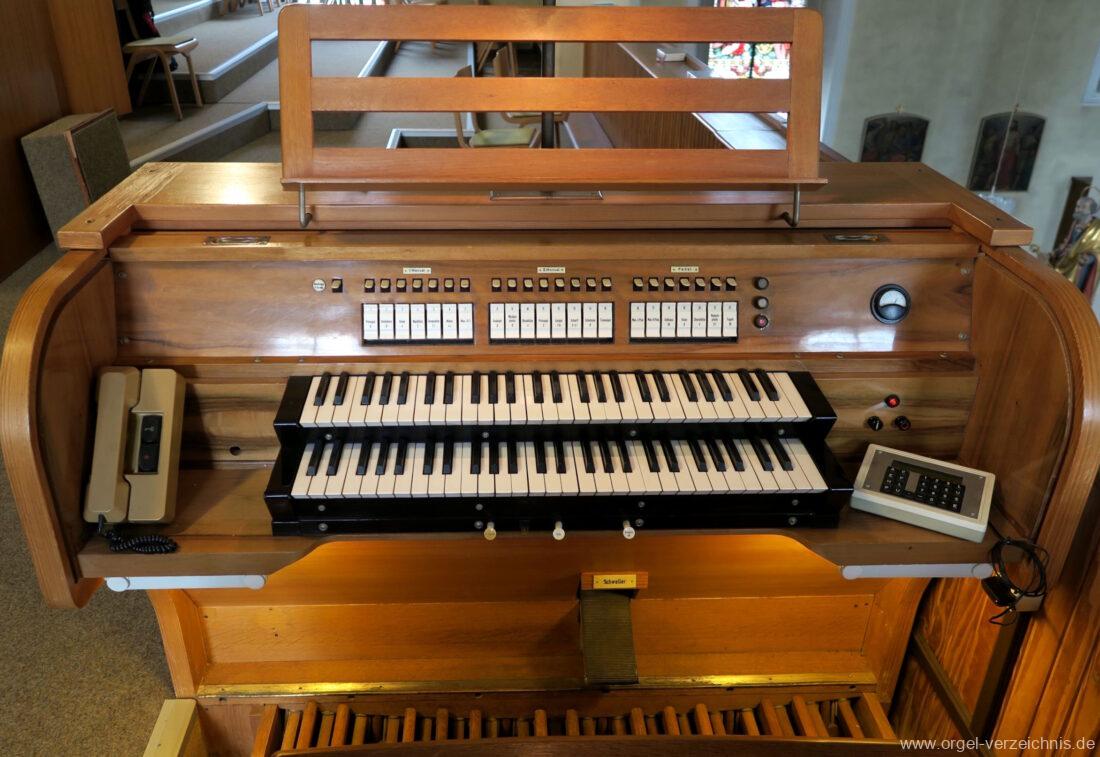 1963 Kegelladenorgel mit seitlich freistehendem Spieltisch und rein elektrischer Traktur, erbaut unter Verwendung von Material der Vorgängerorgel und einiger Register der alten Orgel aus Todtnau (Schwarz 1898/1943) durch Orgelbau Xaver Mönch Söhne (Überlingen/Bodensee) II/18. Circa die Hälfte des Pfeifenwerks ist Altbestand. Einweihung der Orgel am 15. Dezember 1963.