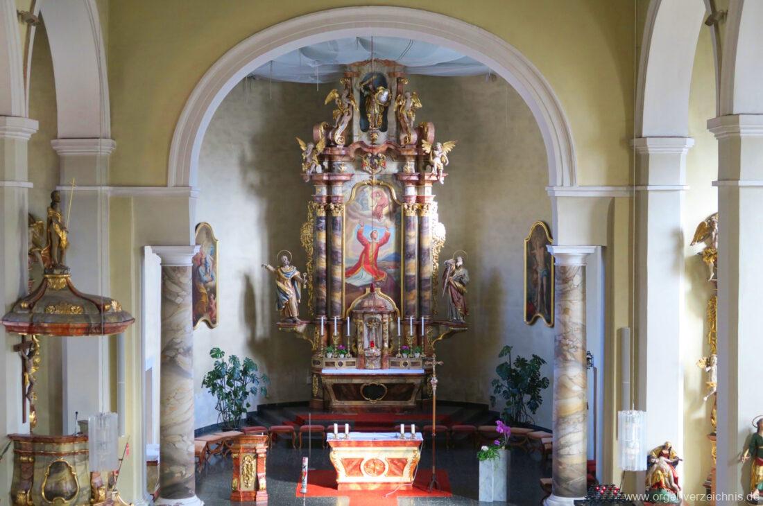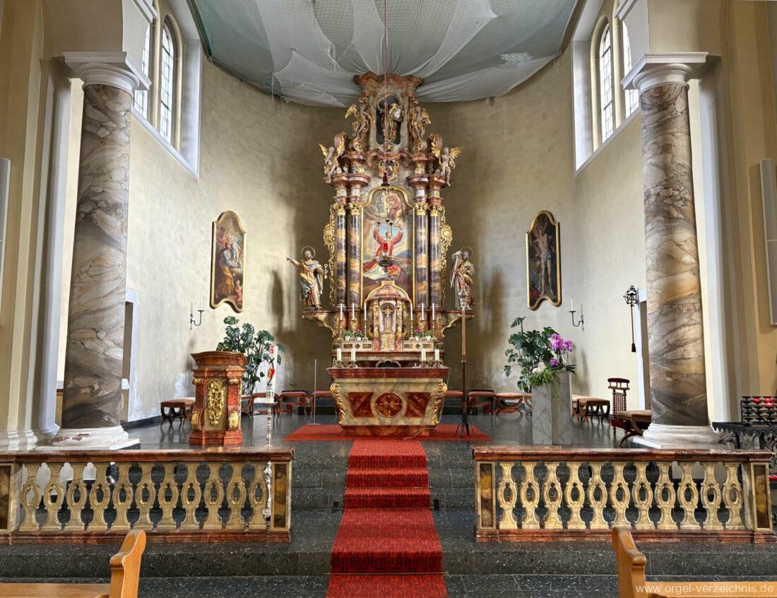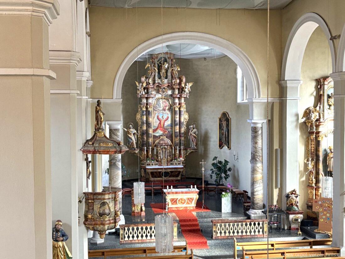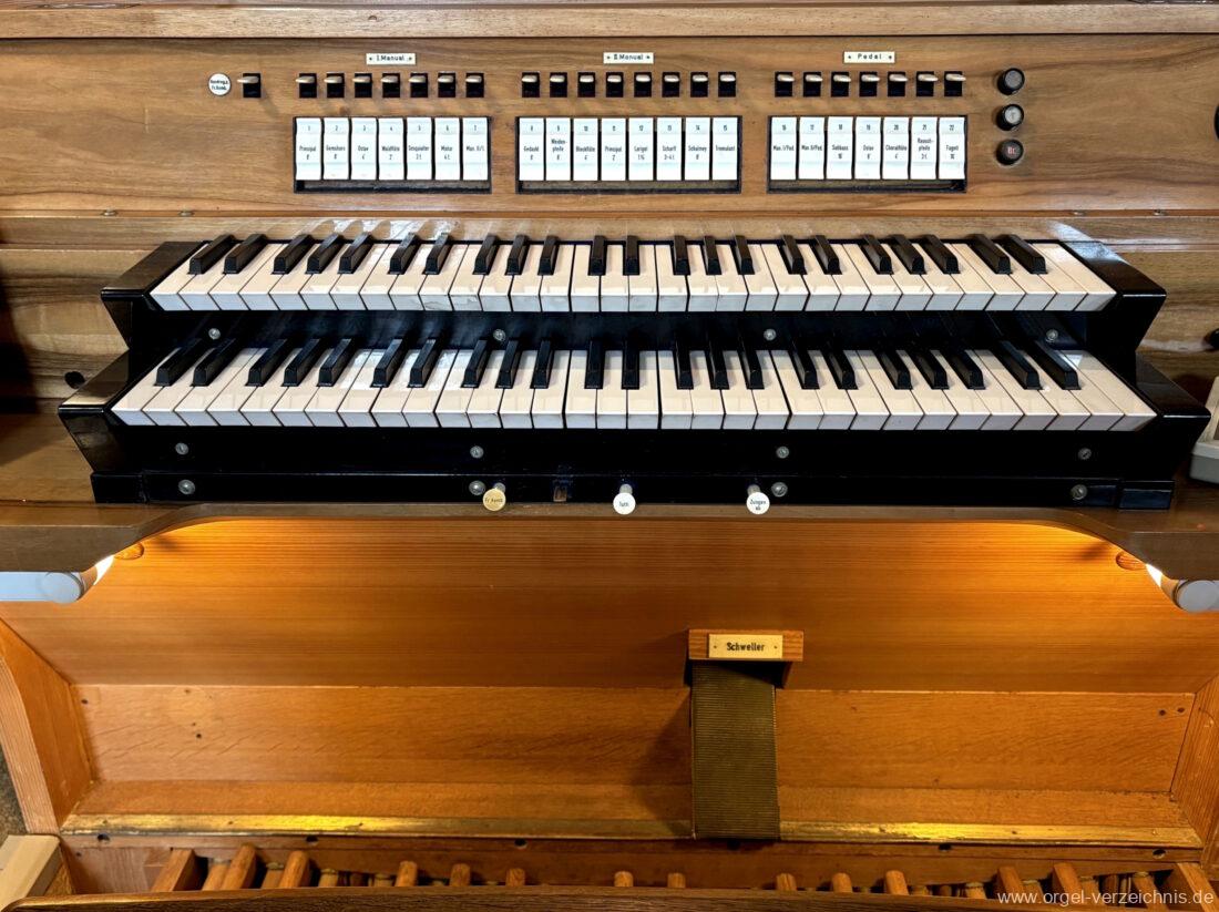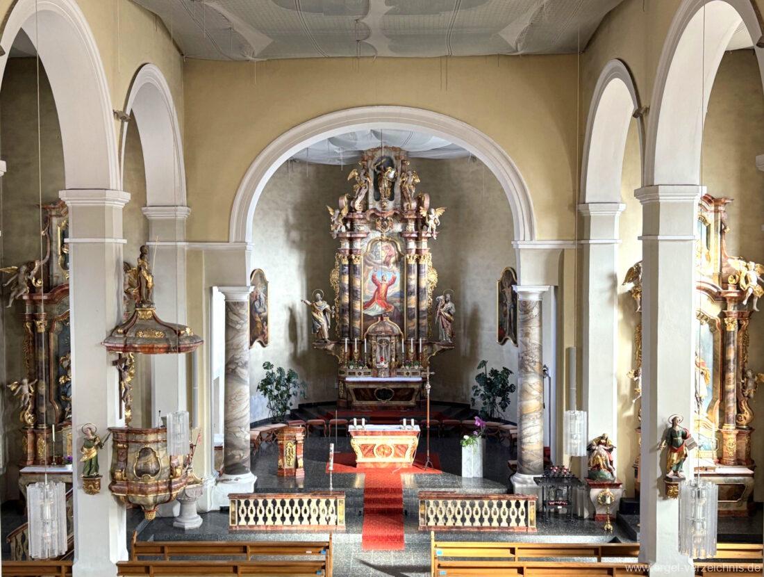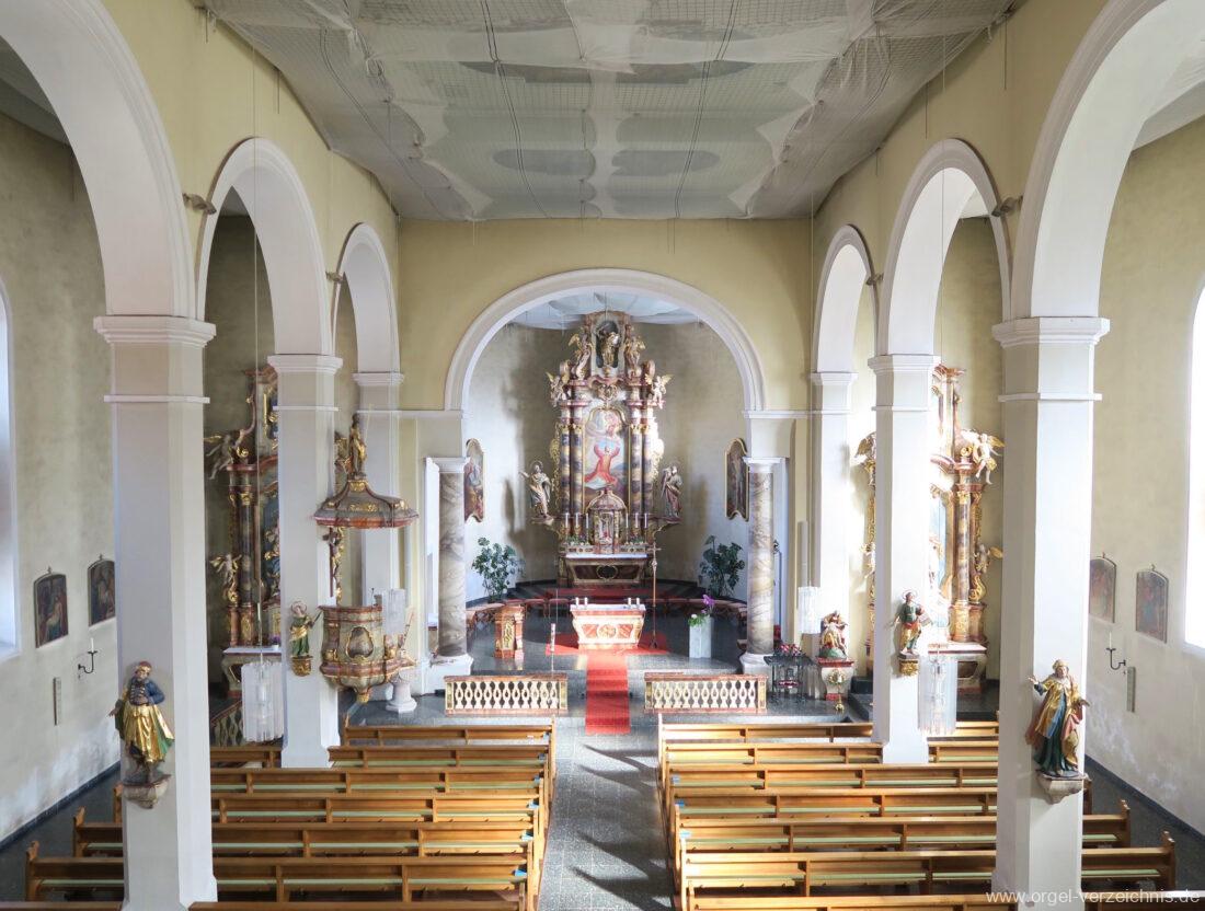 1963 Kegelladenorgel mit seitlich freistehendem Spieltisch und rein elektrischer Traktur, erbaut unter Verwendung von Material der Vorgängerorgel und einiger Register der alten Orgel aus Todtnau (Schwarz 1898/1943) durch Orgelbau Xaver Mönch Söhne (Überlingen/Bodensee) II/18. Circa die Hälfte des Pfeifenwerks ist Altbestand. Einweihung der Orgel am 15. Dezember 1963.