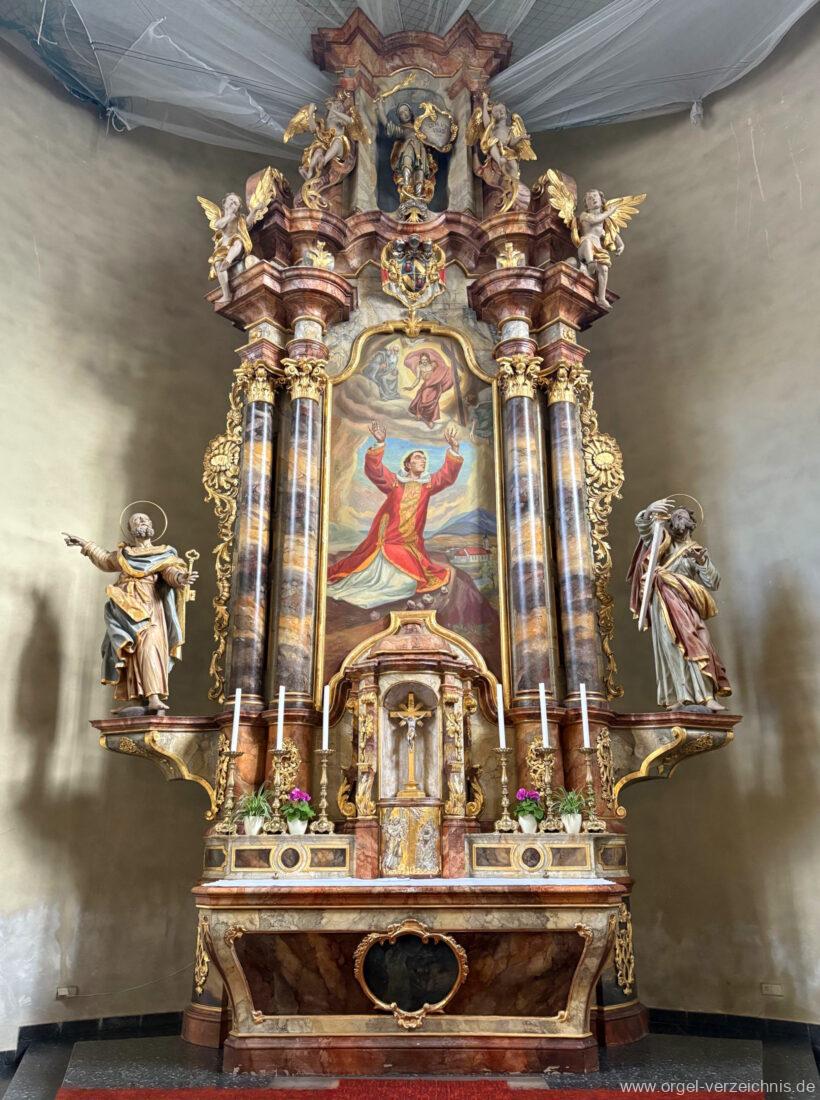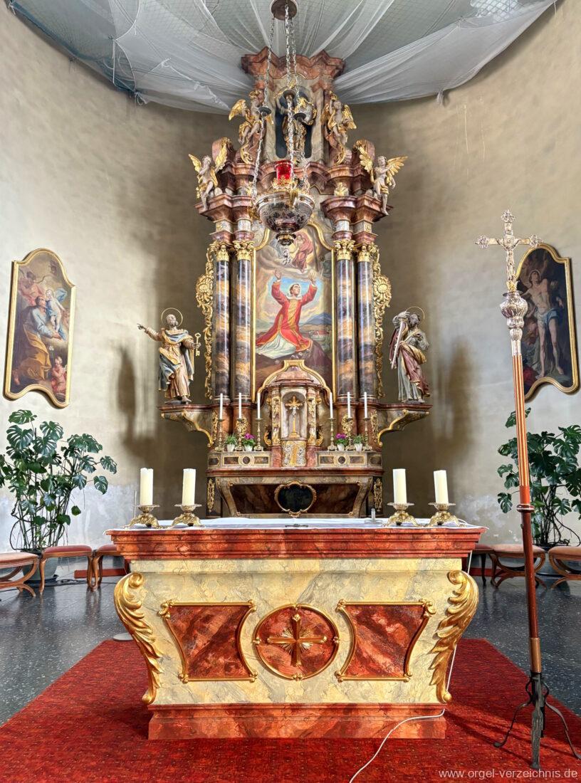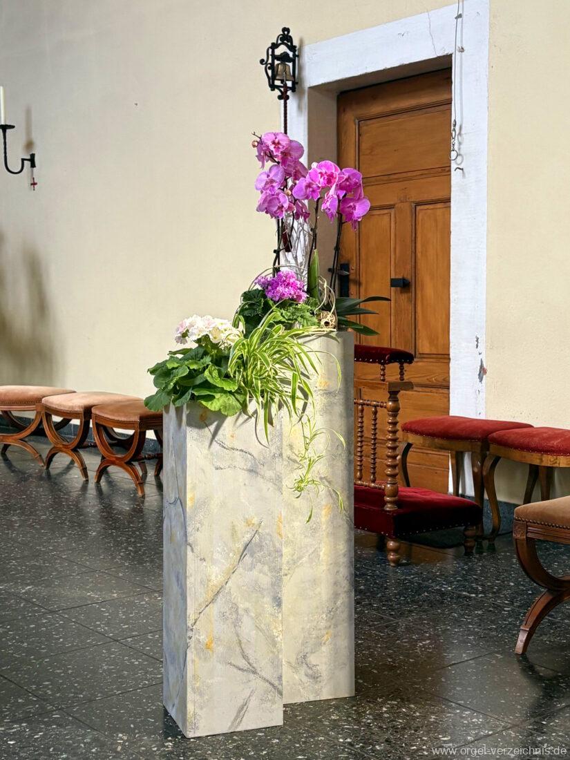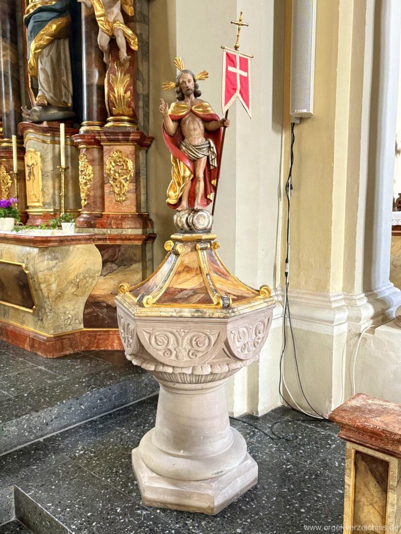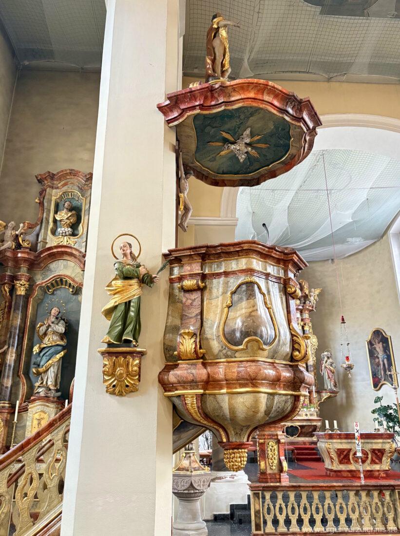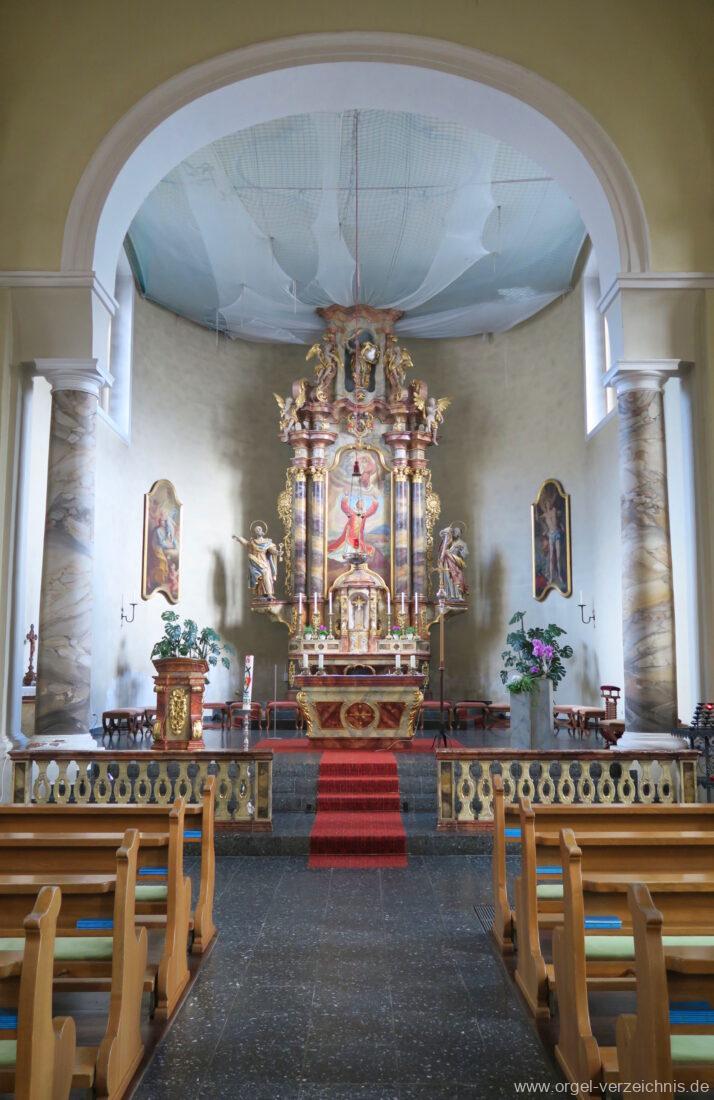 1963 Kegelladenorgel mit seitlich freistehendem Spieltisch und rein elektrischer Traktur, erbaut unter Verwendung von Material der Vorgängerorgel und einiger Register der alten Orgel aus Todtnau (Schwarz 1898/1943) durch Orgelbau Xaver Mönch Söhne (Überlingen/Bodensee) II/18. Circa die Hälfte des Pfeifenwerks ist Altbestand. Einweihung der Orgel am 15. Dezember 1963.