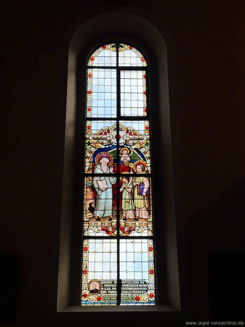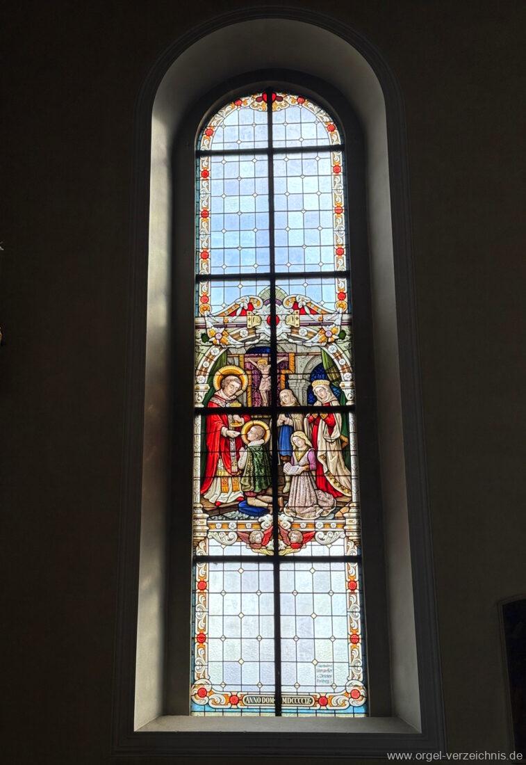 1885/1909 Entstehung von sechs Fenstern von den Glasmalern Helmle, Merzweiler und Jennes (Freiburg).